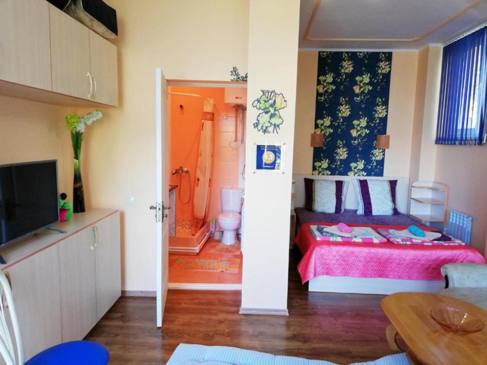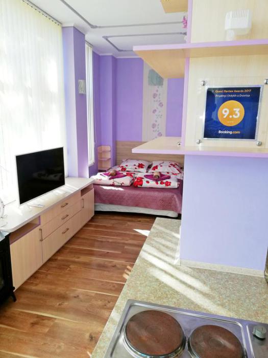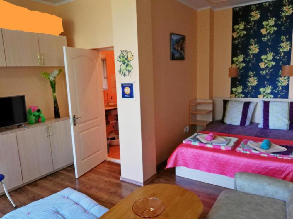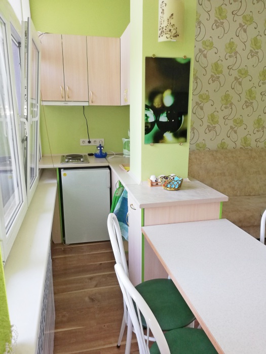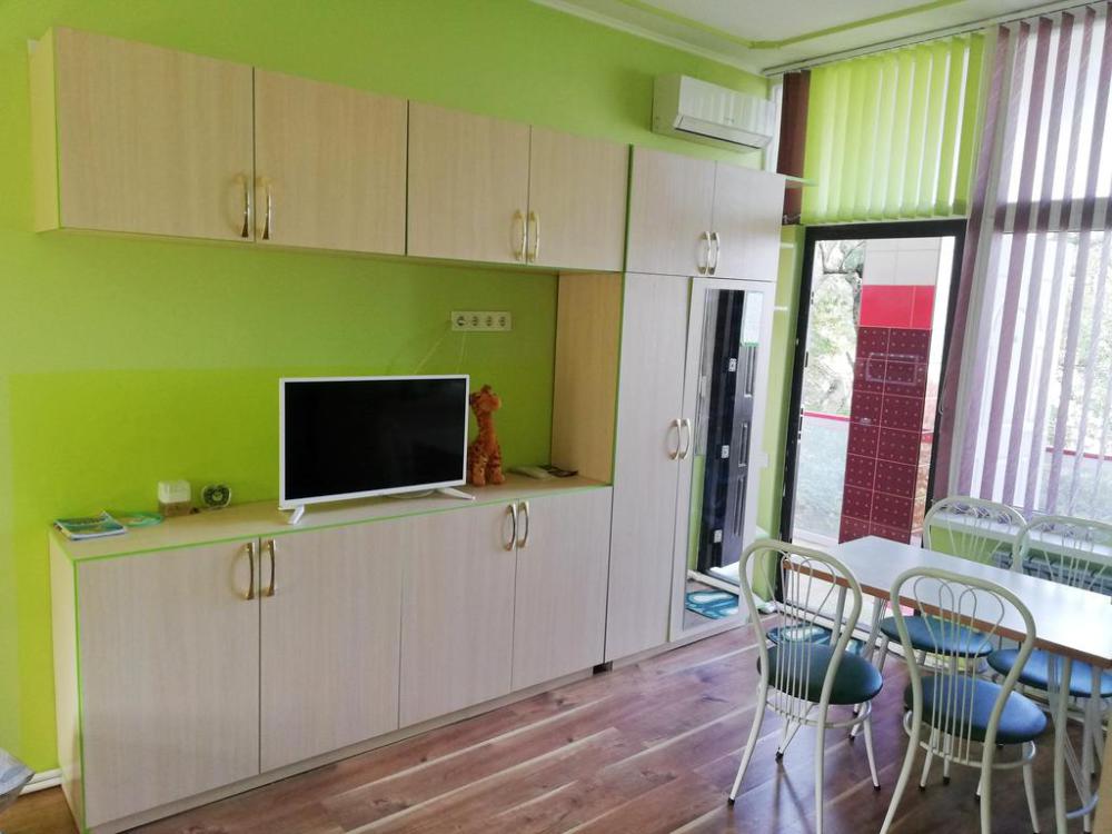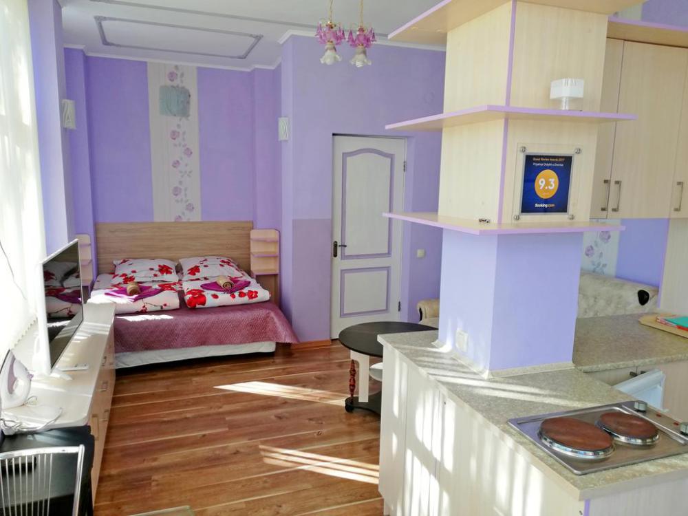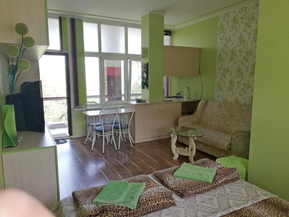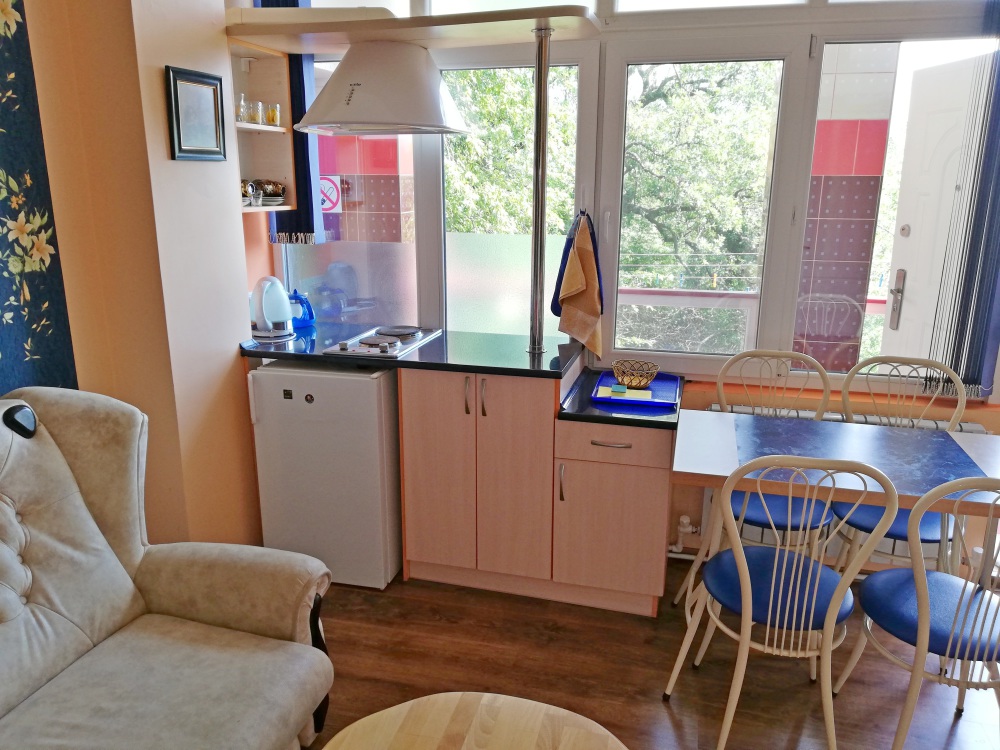 Комната-студия на 2 этаже трехэтажного дома. Для проживания есть всё необходимое: кровать двухспальная с ортопедическим матрасом, прикроватные тумбы, диван-кровать, кондиционер, холодильник, варочная поверхность электрическая на 2 конфорки, ТВ, WI-FI, бойлер 80 л (вода без перебоев), фен, утюг, посуда, бельё, полотенца, балкон/лоджия, парковочное место.