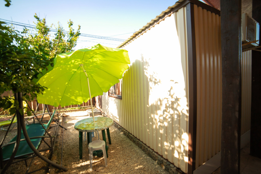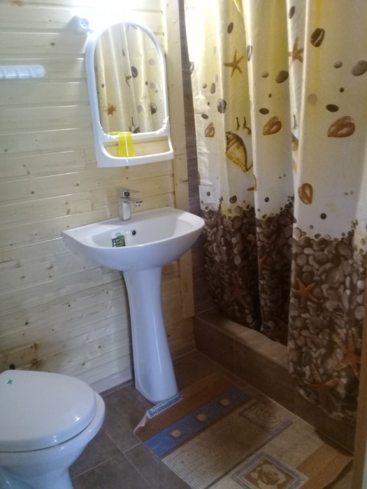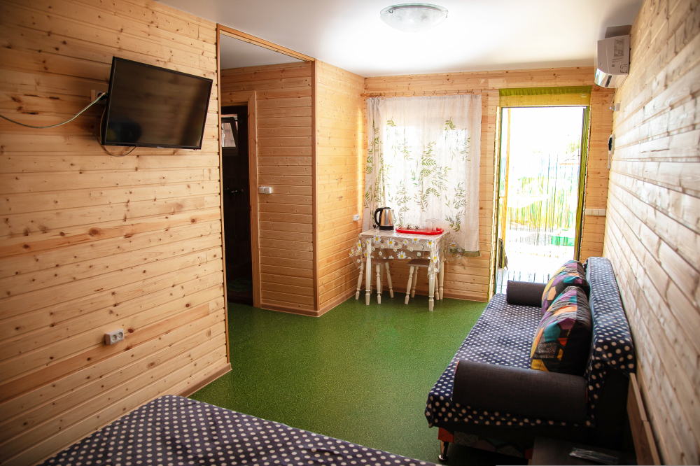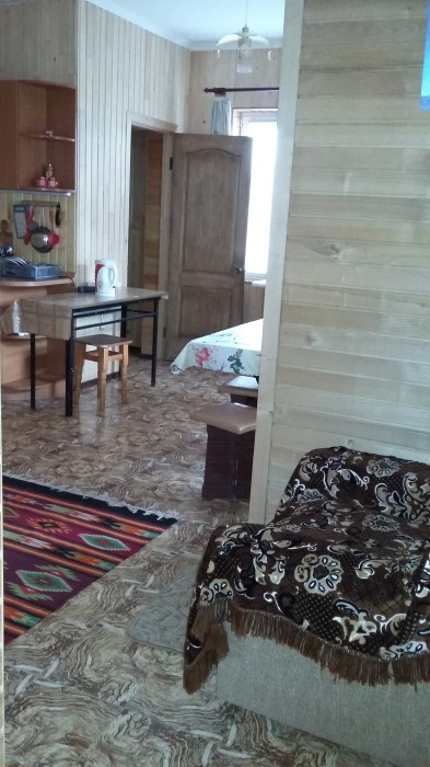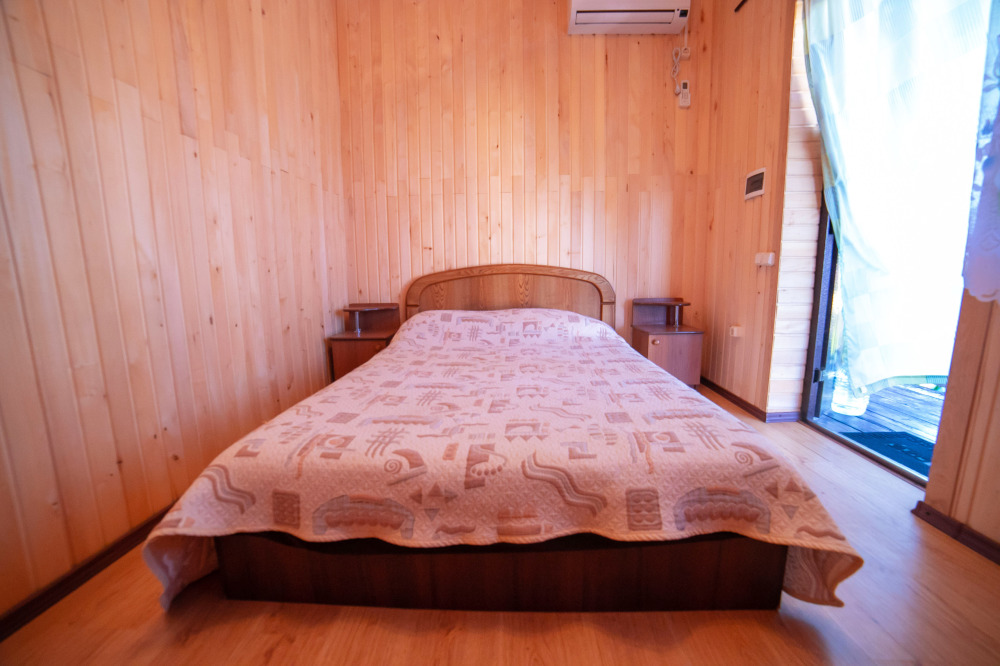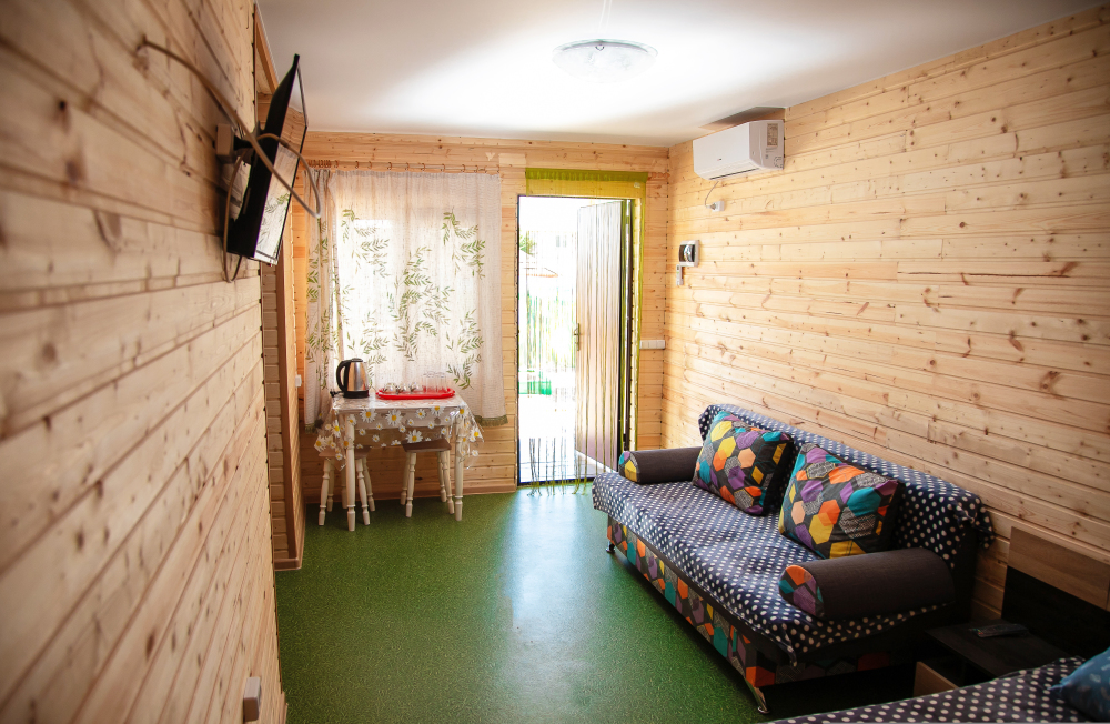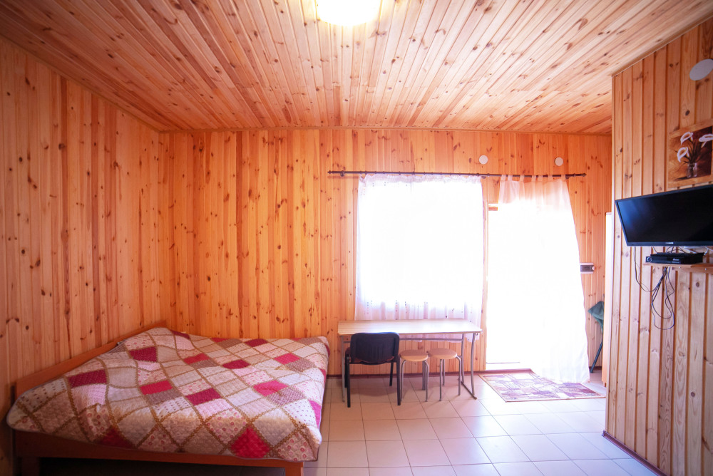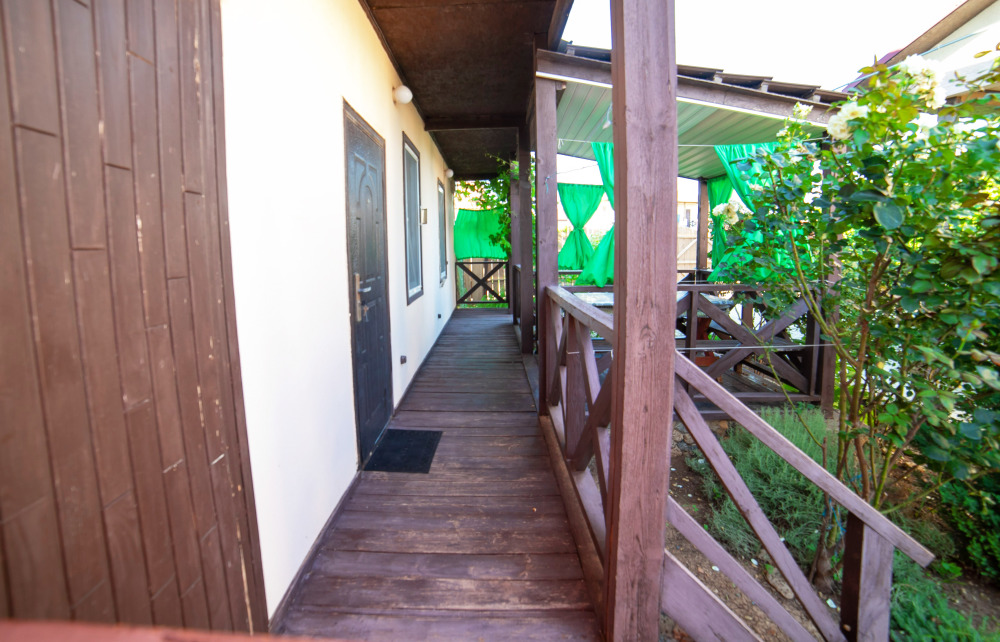 Номер расположен на отельной территории площадью 400 кв.м. Имеет террасу со столиком и стульями для отдыха на воздухе. Вода холодная и горячая круглосуточно, беспроводной интернет, все удобства.