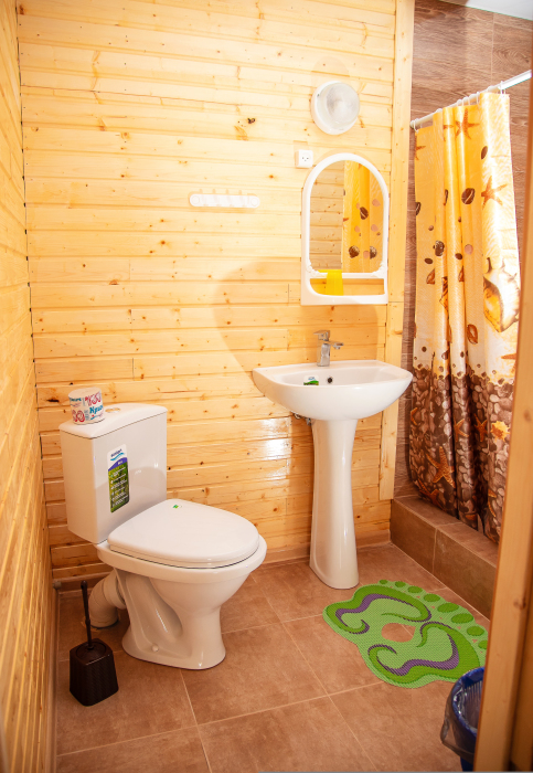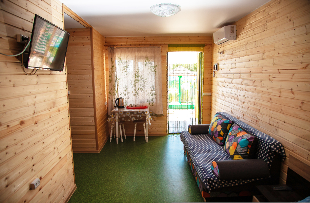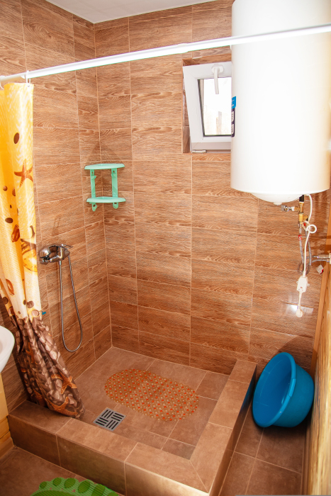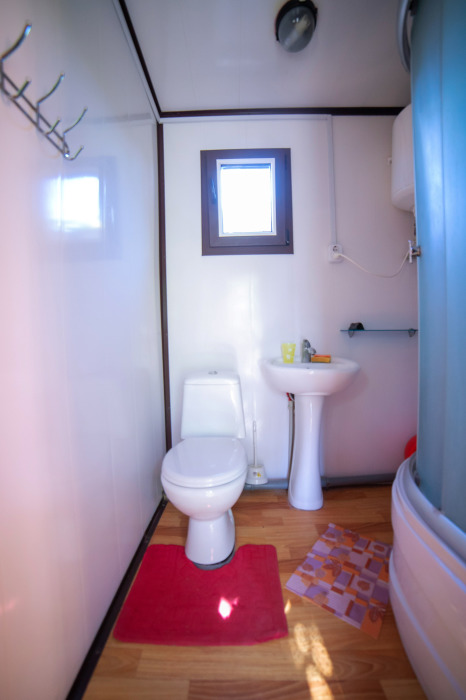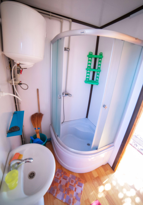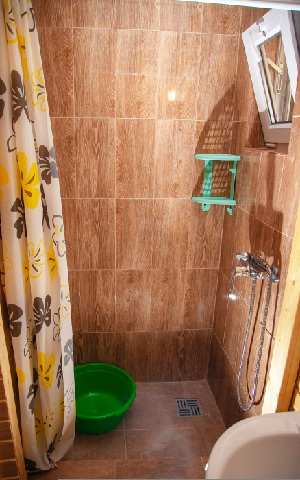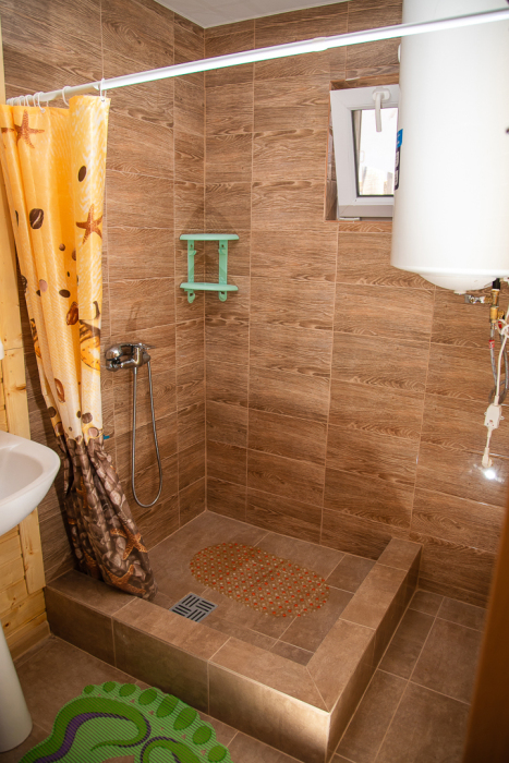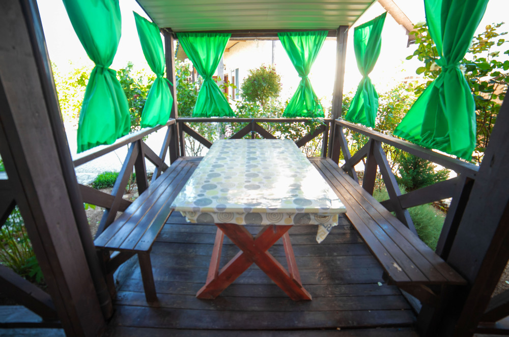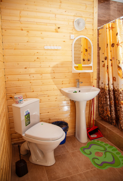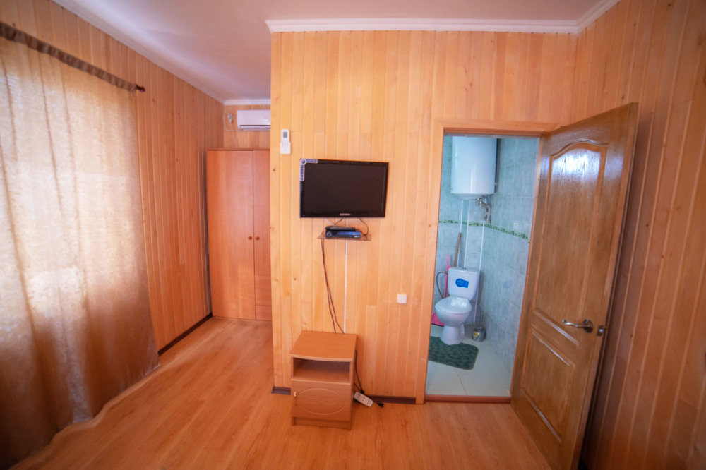 Номер расположен на отельной территории площадью 400 кв.м. Имеет террасу со столиком и стульями для отдыха на воздухе. Вода холодная и горячая круглосуточно, беспроводной интернет, все удобства.