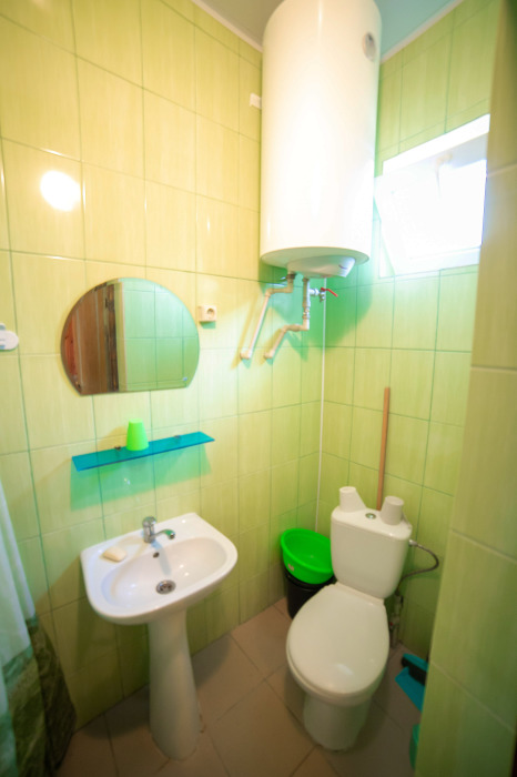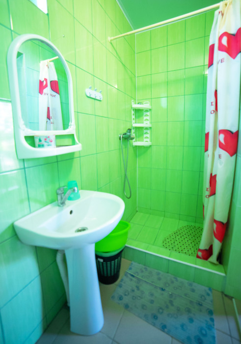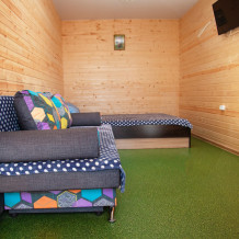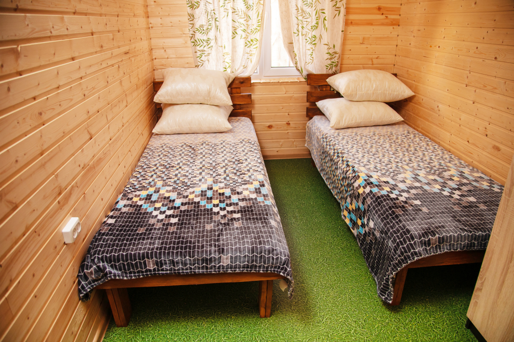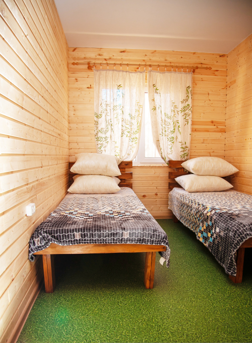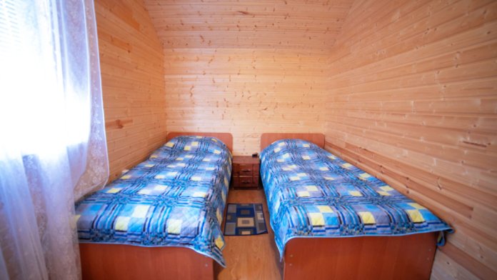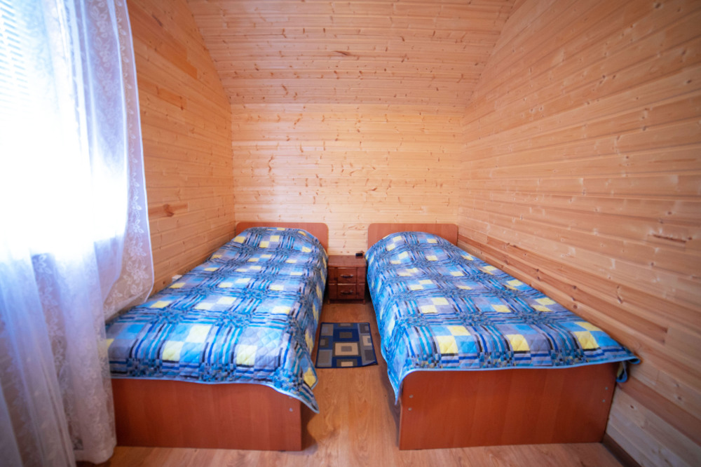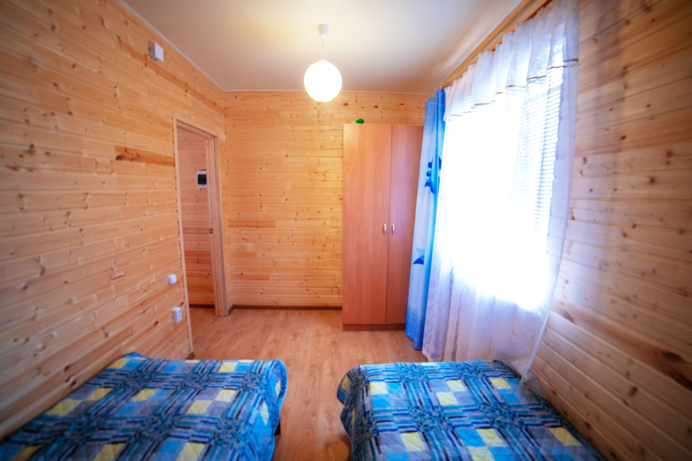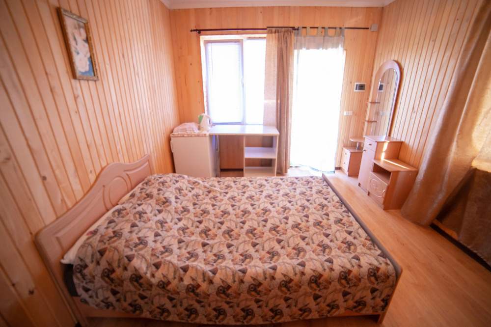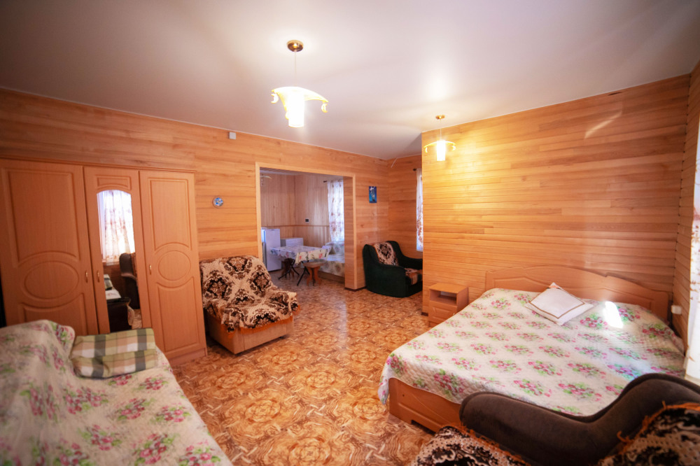 Комната с четырьмя односпальными кроватями, которые при желании можно расположить по собственному желанию. Также в номере шкаф, зеркало, два стола, стулья. Возле комнаты терраса со столом и стульями для отдыха. Интернет, холодная и горячая вода - круглосуточно.