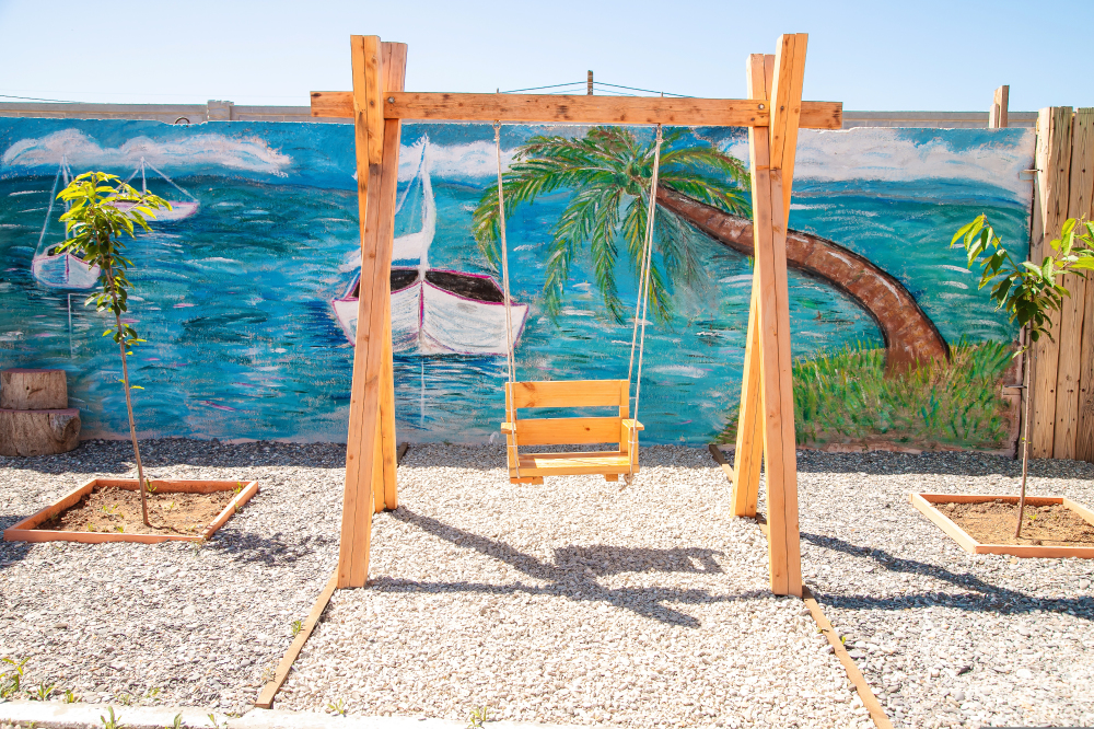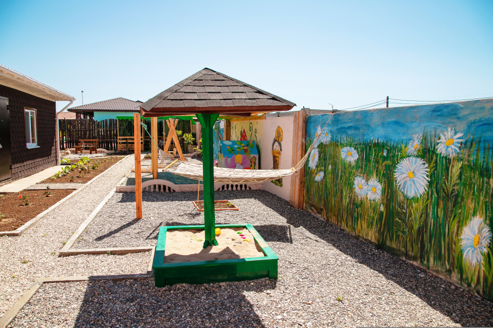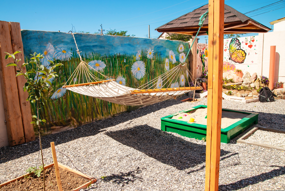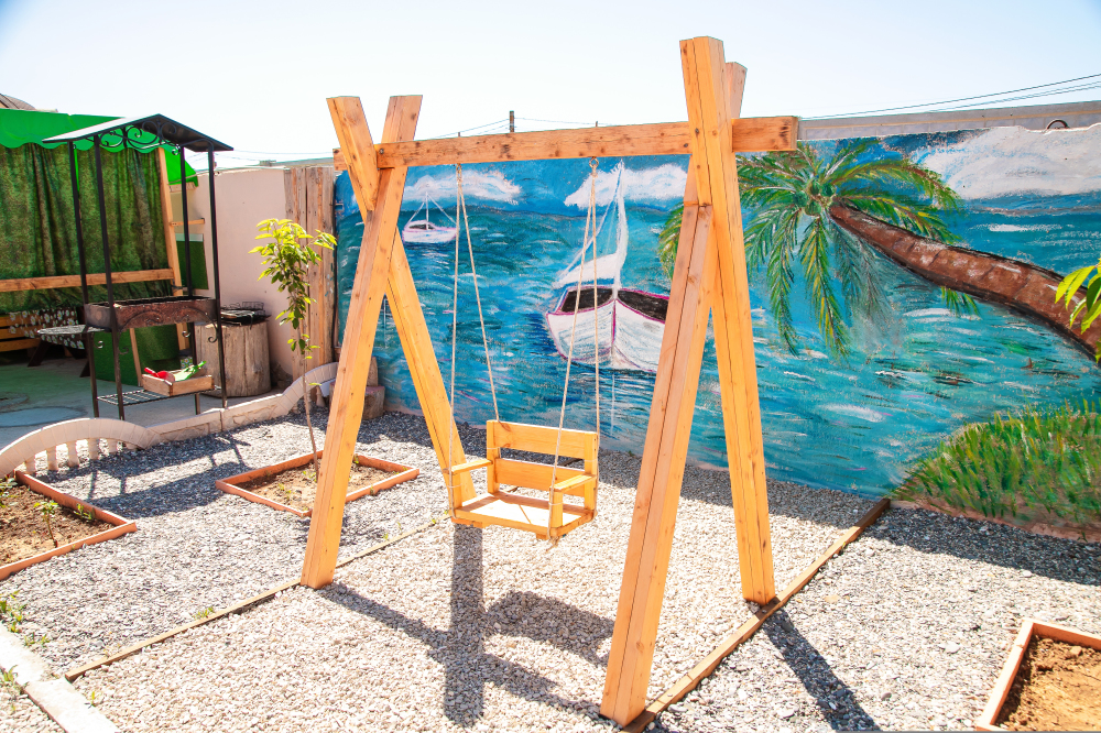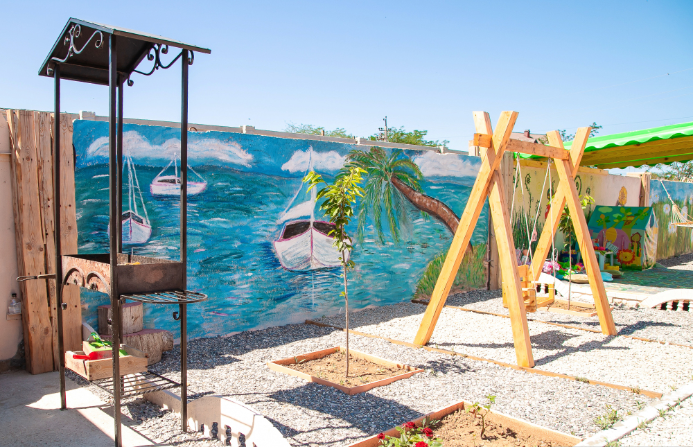 Номера построены в 2020 году и находятся на отдельной территории, на которой размещены: кухня с полным набором посуды, песочница, качели, гамак, мангал, беседка для отдыха, фонтан, сад.