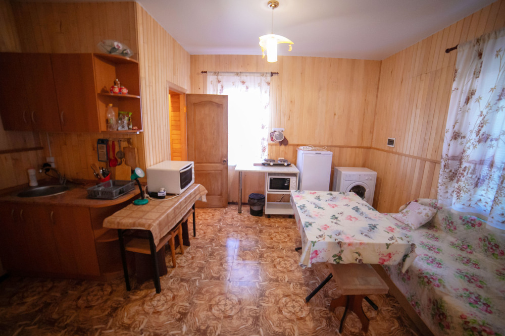 Студия занимает весь первый этаж дома со своей стиральной машиной, кухней и беседкой для отдыха, имеет отдельный вход.