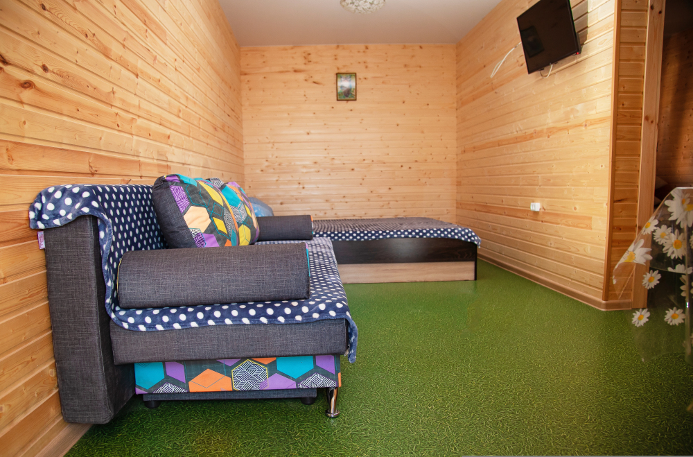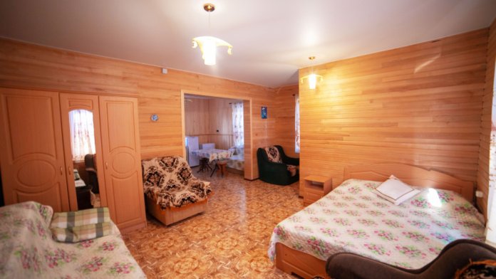 При строительстве гостевого дома большое внимание уделялось экологичности строительных и отделочных материалов. Отделка номеров - настоящее дерево, пластик при строительстве не использовался.