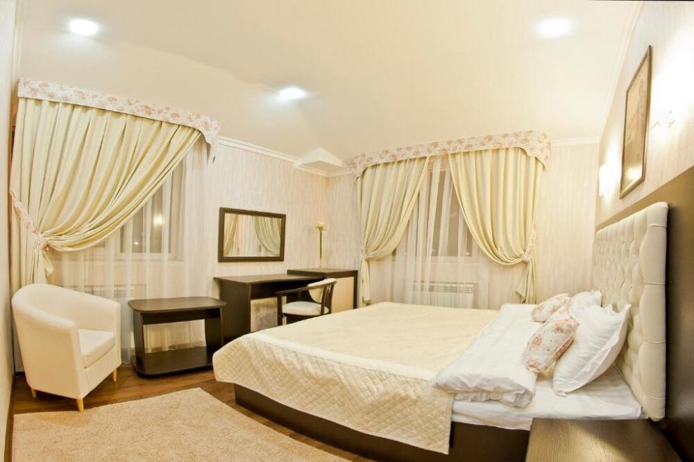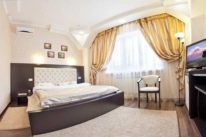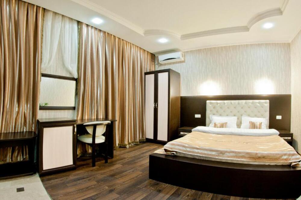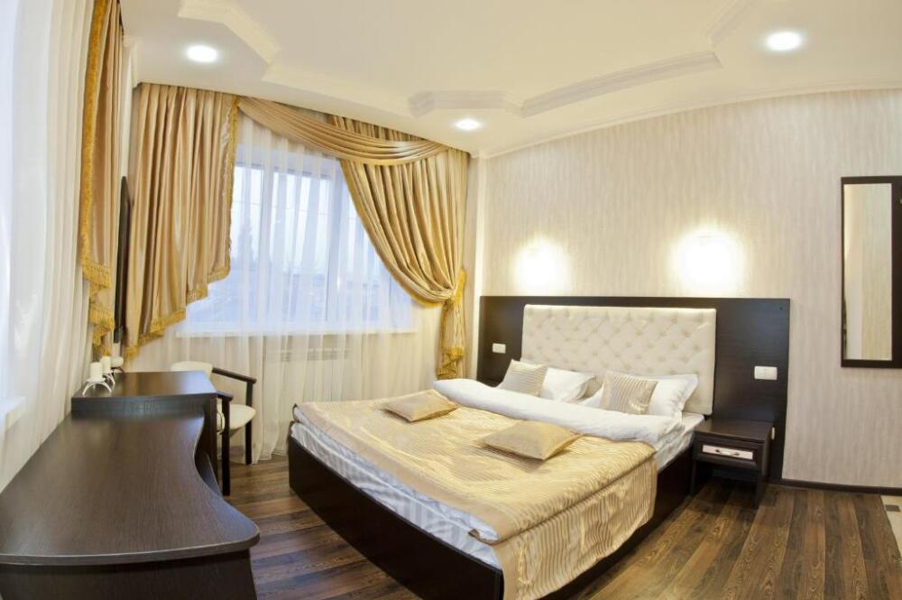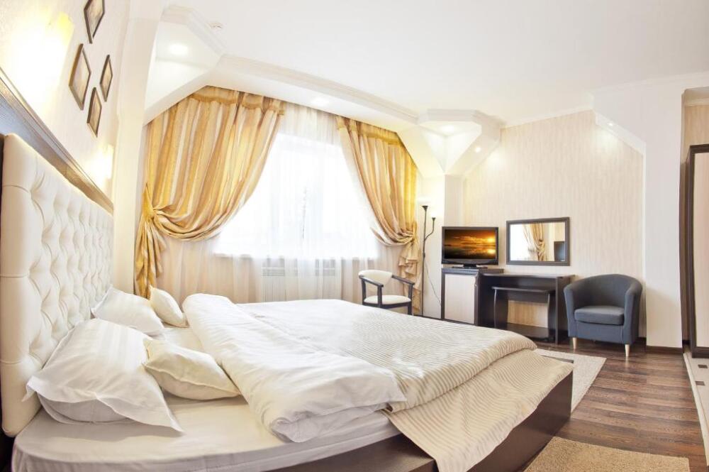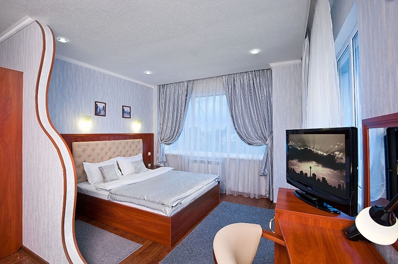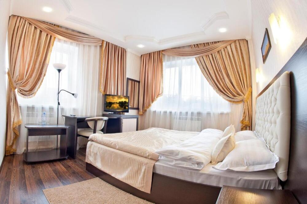 Номер со всеми удобствами, ТВ, холодильник, двухспальная кровать, прикроватная тумбочка, рабочий стол.