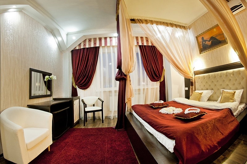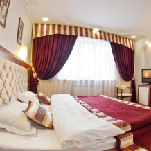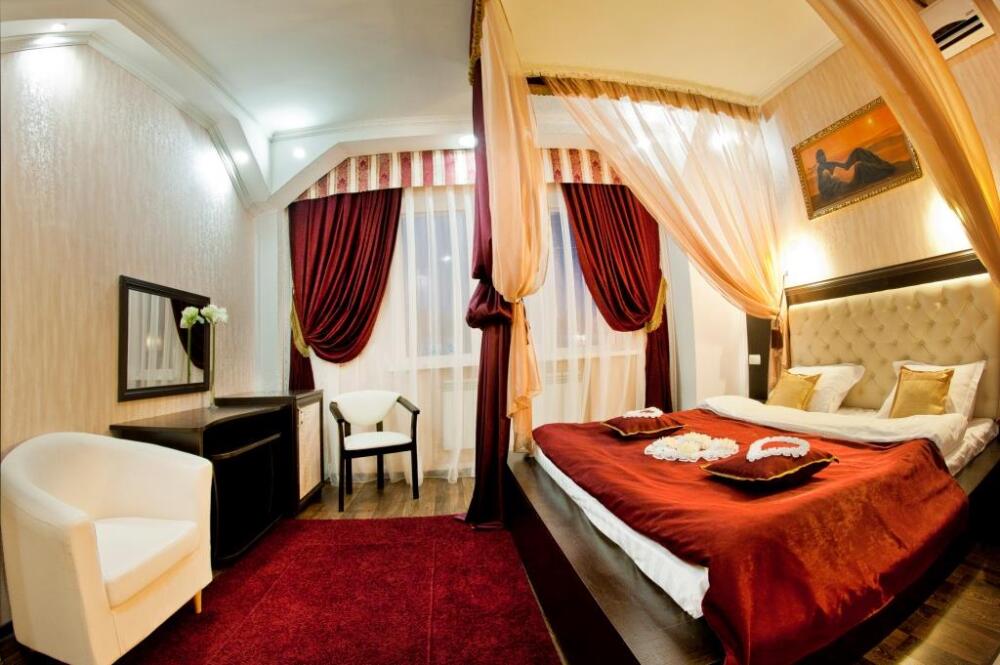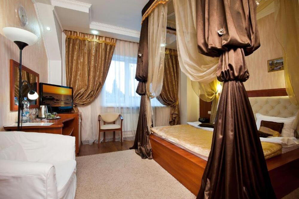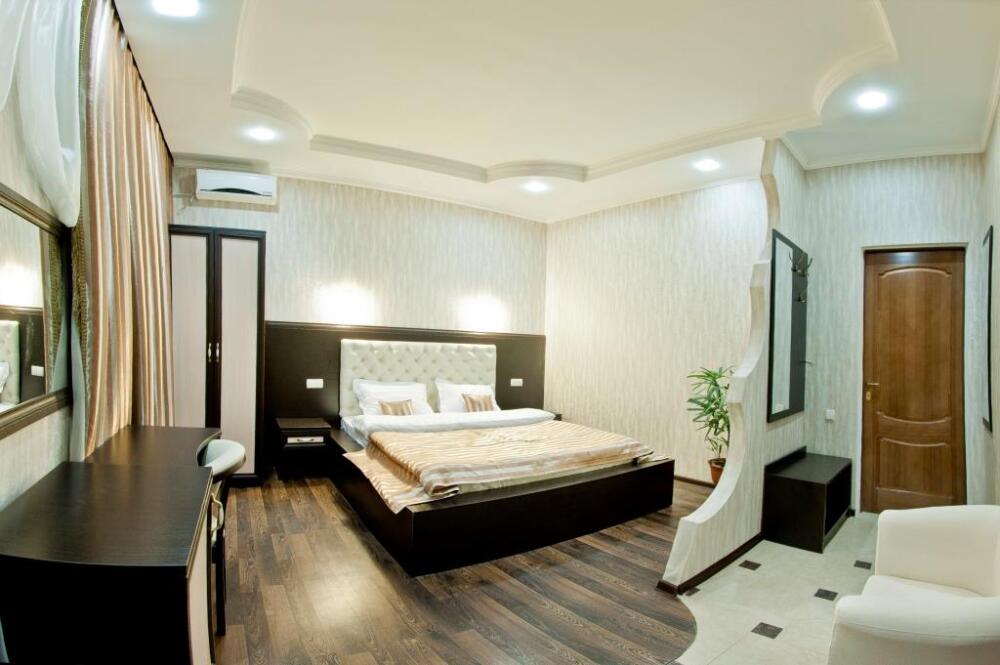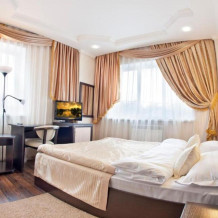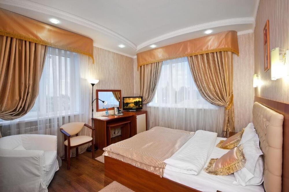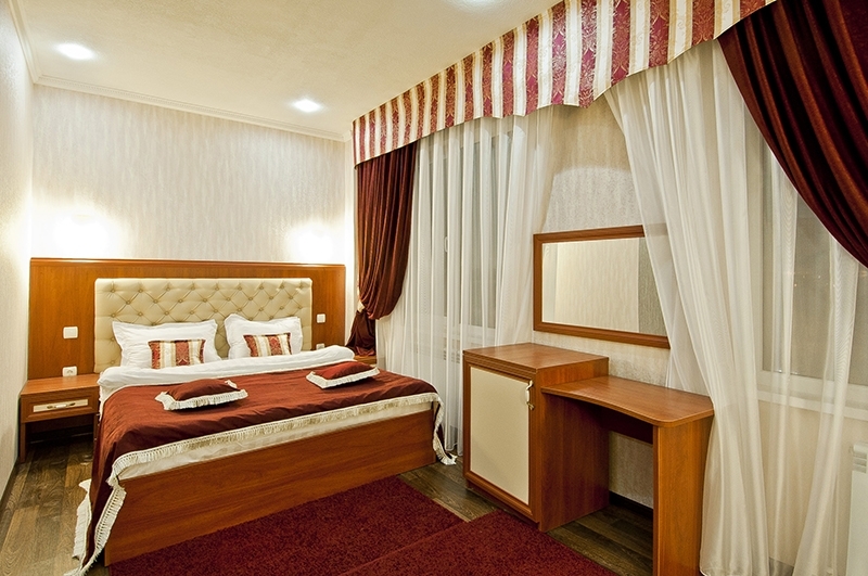 Номер со всеми удобствами, ТВ, холодильник, двухспальная кровать, прикроватная тумбочка, рабочий стол.