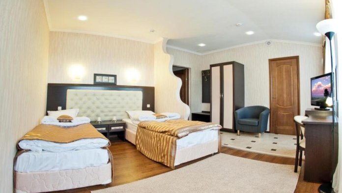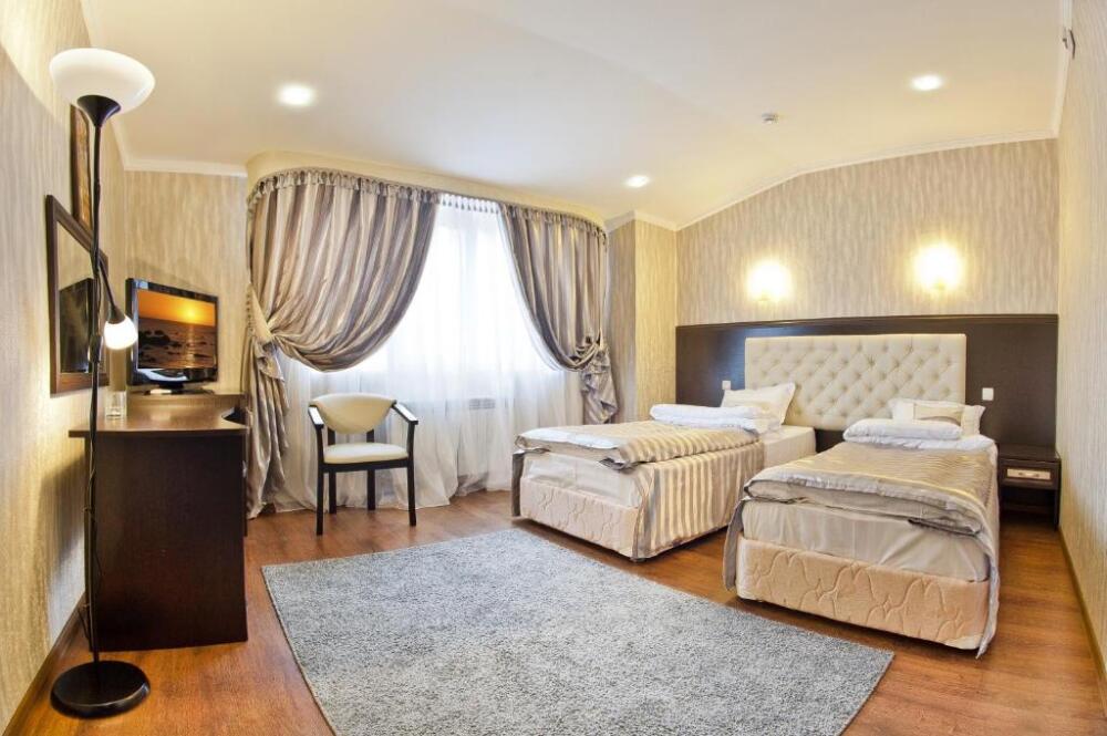 Номер со всеми удобствами, ТВ, холодильник, 2 раздельные кровати, прикроватная тумбочка, рабочий стол.