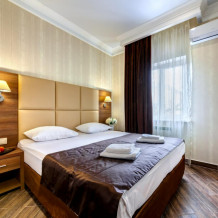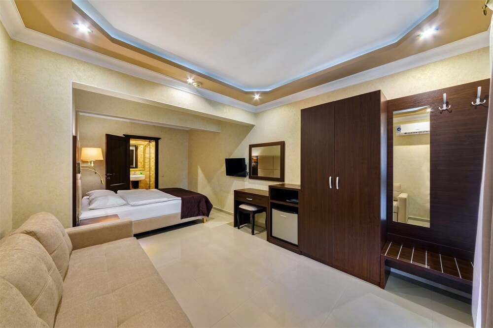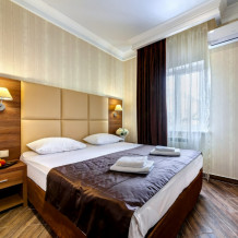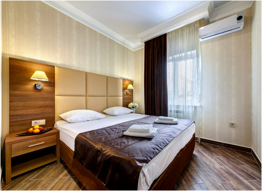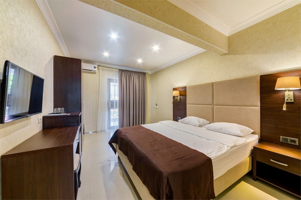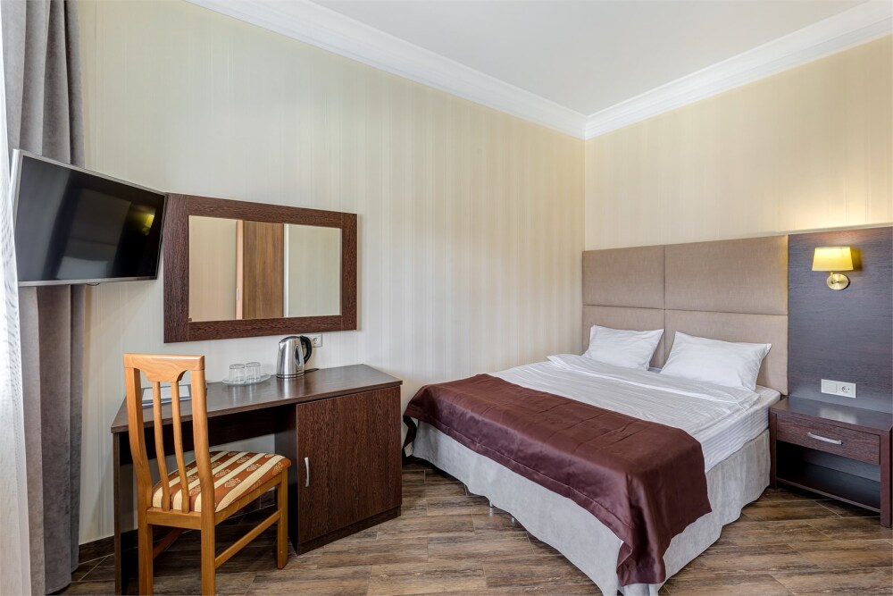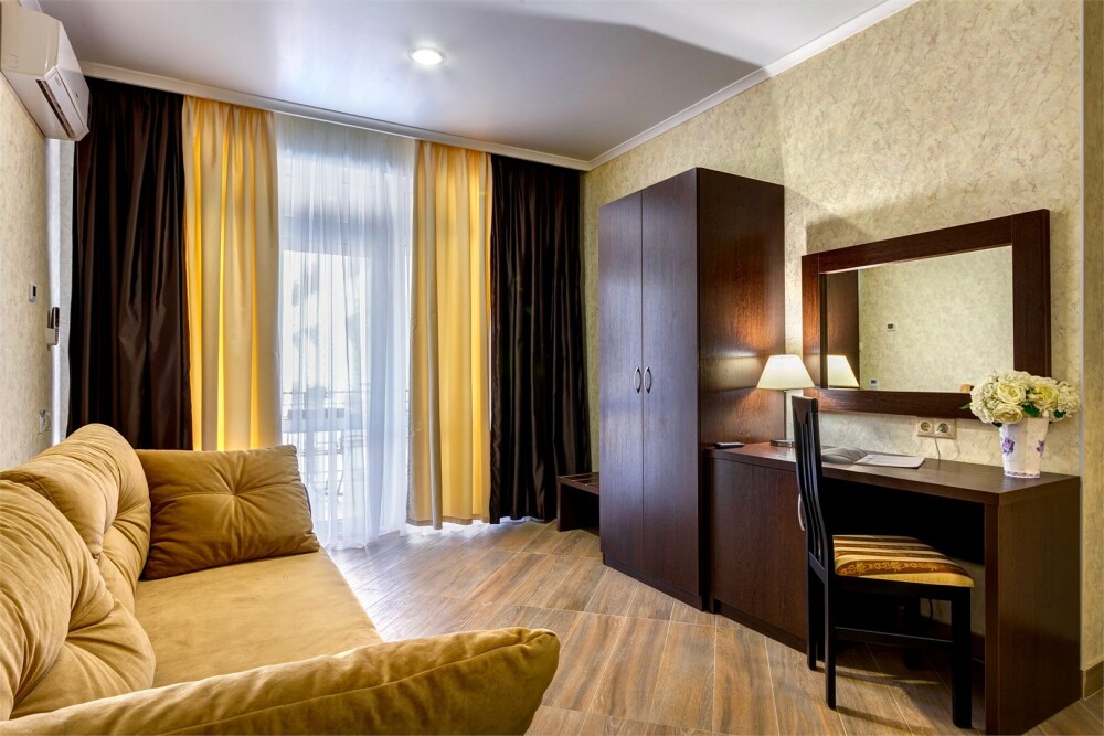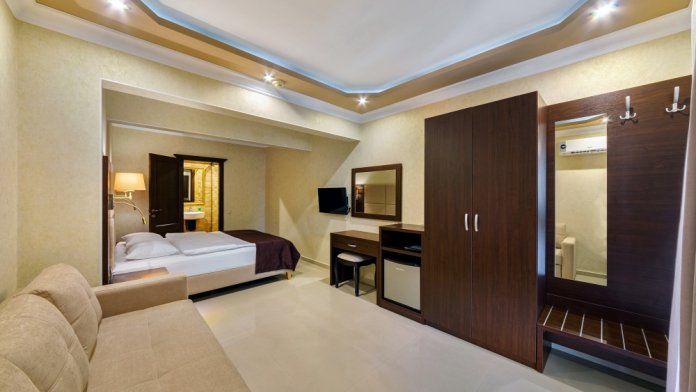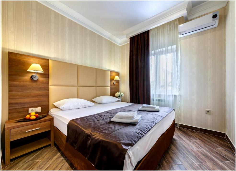 Мы подготовили все необходимое для Вашего отдыха: санузел, косметические принадлежности, тапочки, телевизор, кондиционер, быстрый Wi-Fi. У нас Вы можете насладиться отдыхом и тишиной. В стоимость проживания включён завтрак в формате шведского стола. Так Вы сможете не привязываться к отелю и определённому времени в нем, спокойно гулять и наслаждаться морем. А мы за счёт этого можем сохранить доступные цены на проживание.