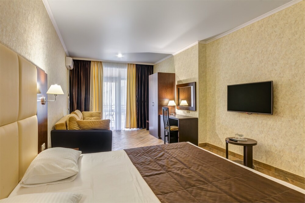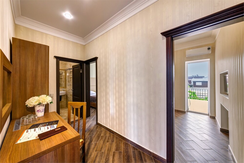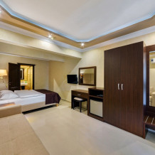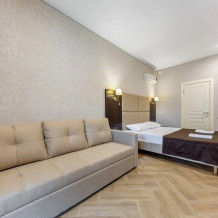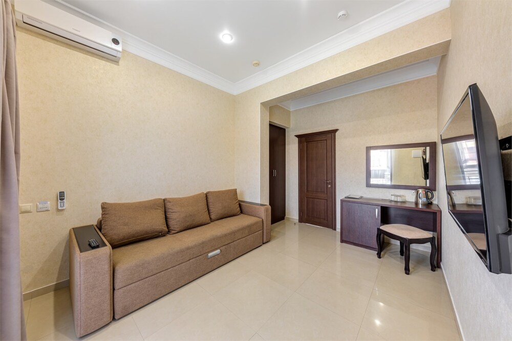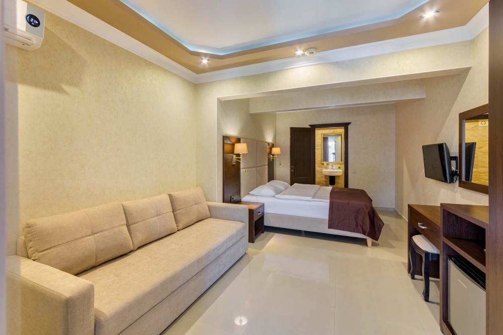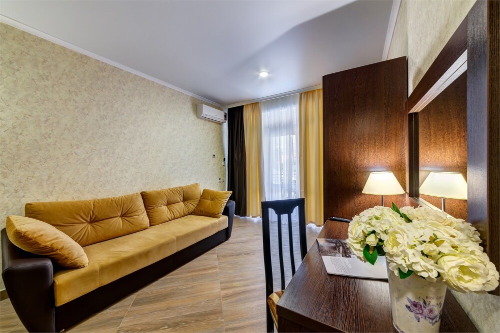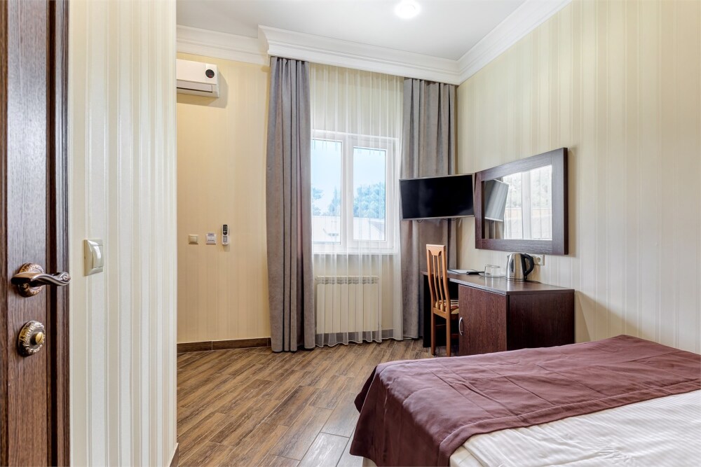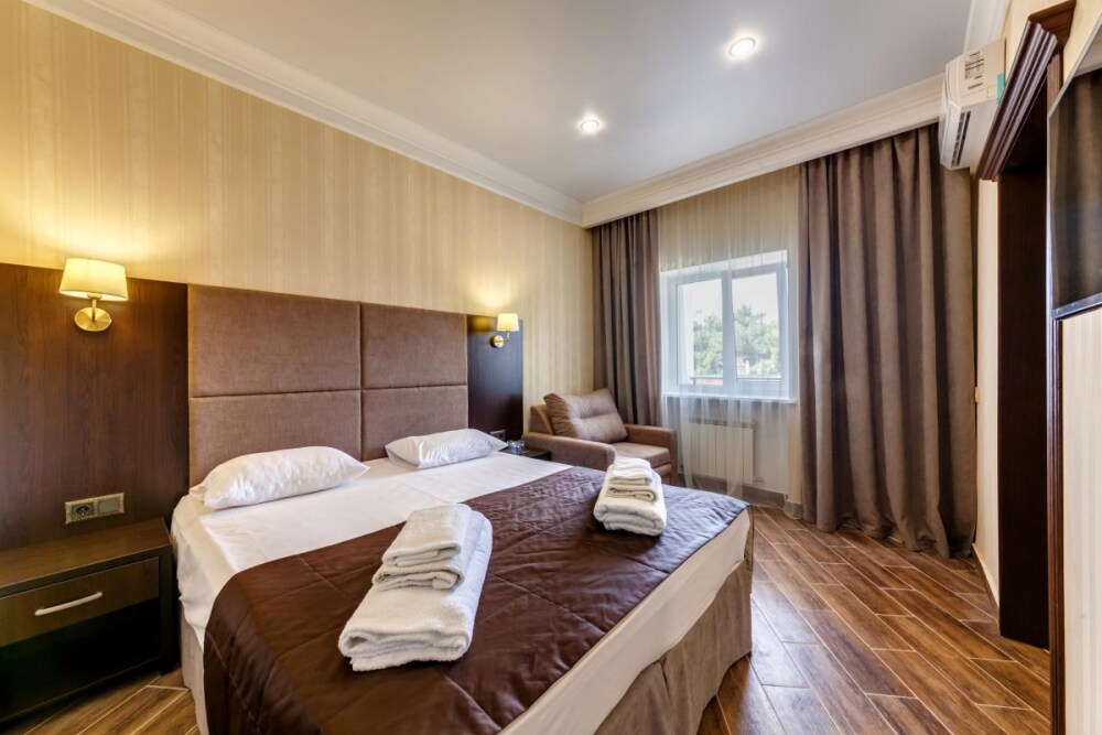 Мы подготовили все необходимое для Вашего отдыха: санузел, косметические принадлежности, тапочки, телевизор, кондиционер, быстрый Wi-Fi. У нас Вы можете насладиться отдыхом и тишиной. В стоимость проживания включён завтрак в формате шведского стола. Так Вы сможете не привязываться к отелю и определённому времени в нем, спокойно гулять и наслаждаться морем. А мы за счёт этого можем сохранить доступные цены на проживание.