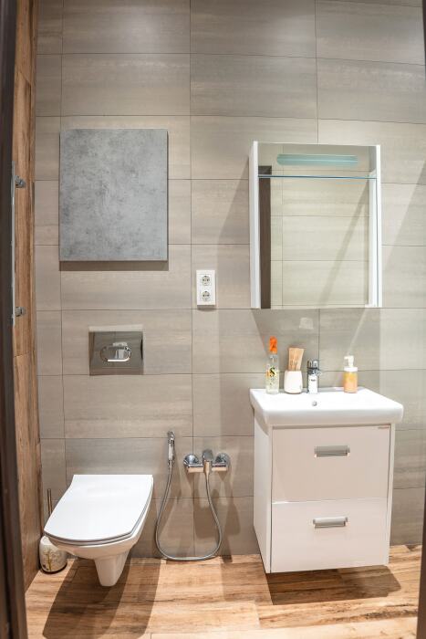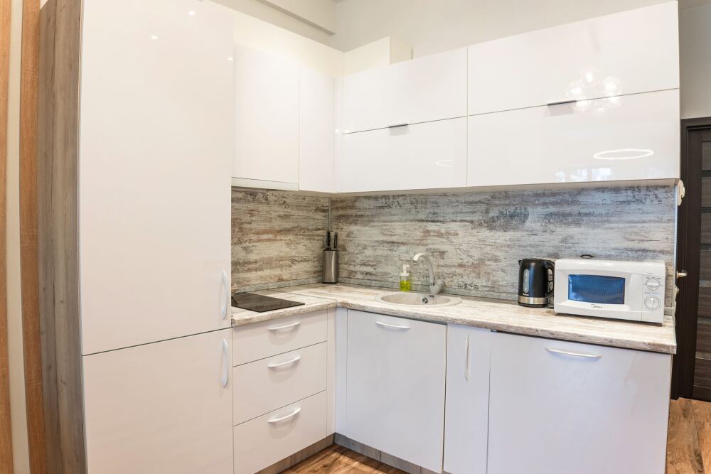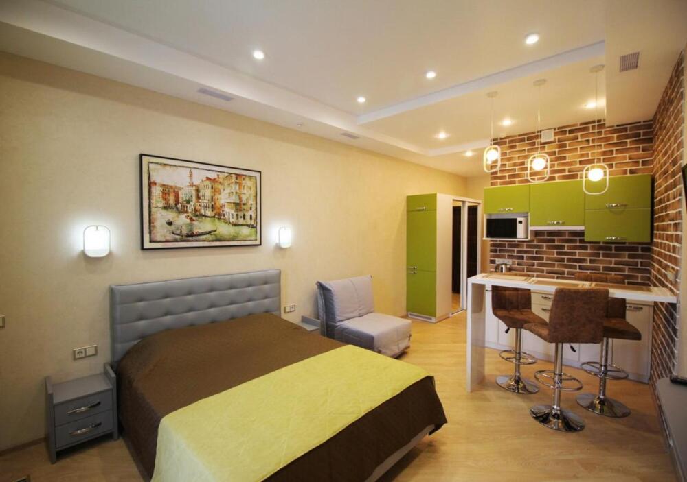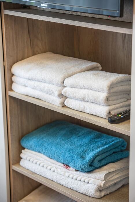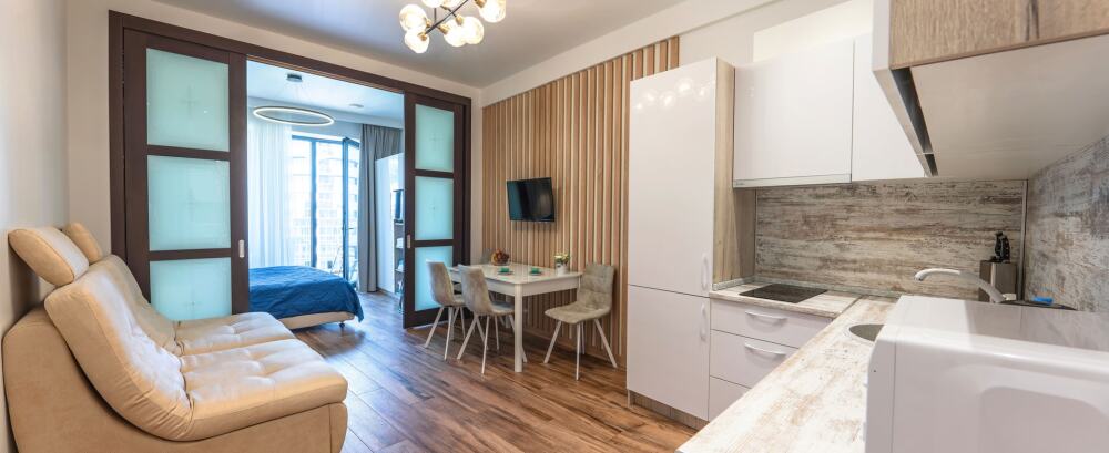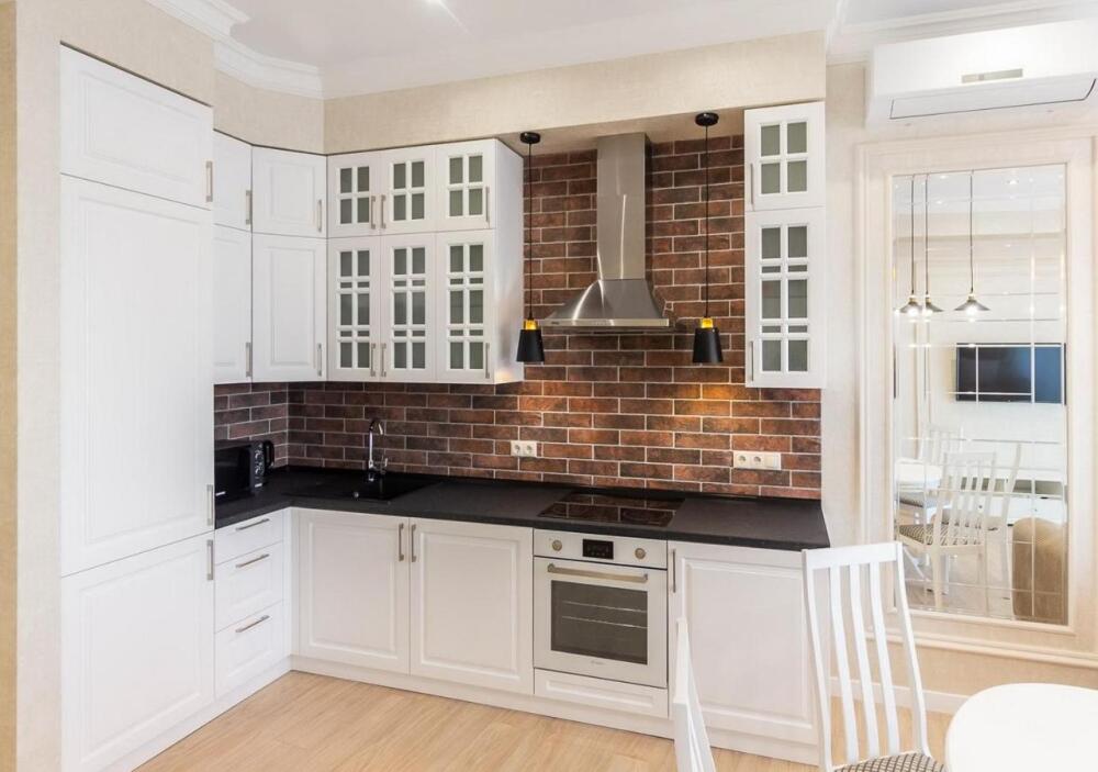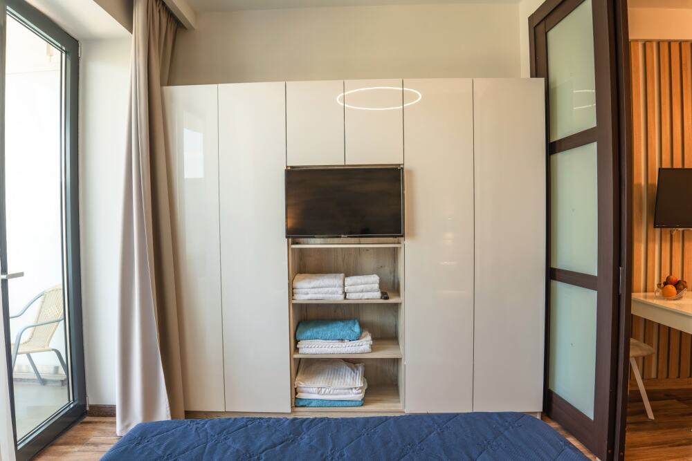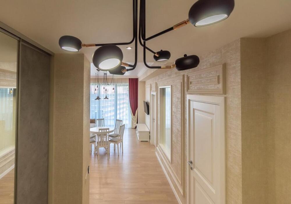 Апартаменты оборудованы всем необходимым для комфортного отдыха. Из окон открываются панорамные виды на море. В апартаментах установлены кондиционеры, есть необходимая мебель, телевизоры, стиральные машины, кухонная техника.