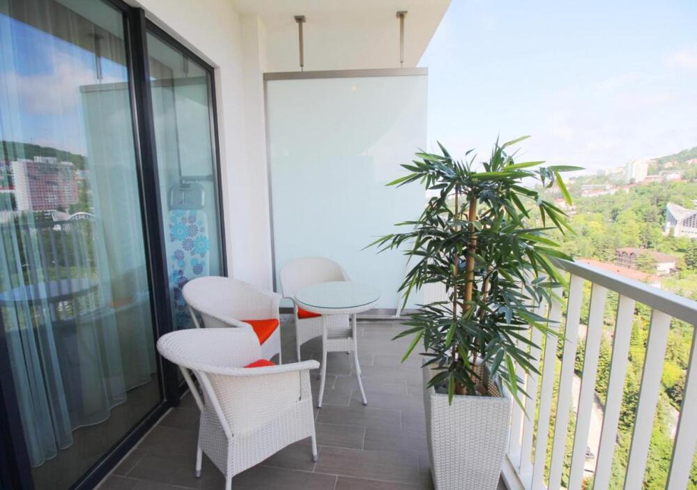 Отель имеет благоустроенную охраняемую территорию с развитой инфраструктурой, живописнейшую парковую зону с субтропической растительностью и видами на бескрайние морские просторы. Развитая инфраструктура комплекса позволит полноценно насладиться отдыхом: SPA-центр, бассейн, собственный ресторан, детские игровые и спортивные площадки, свой собственный пляж.