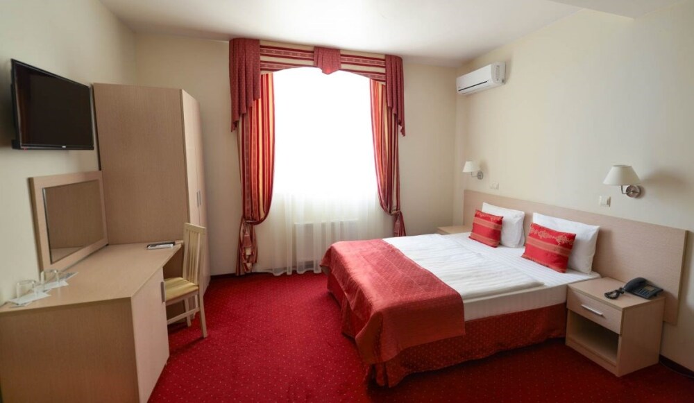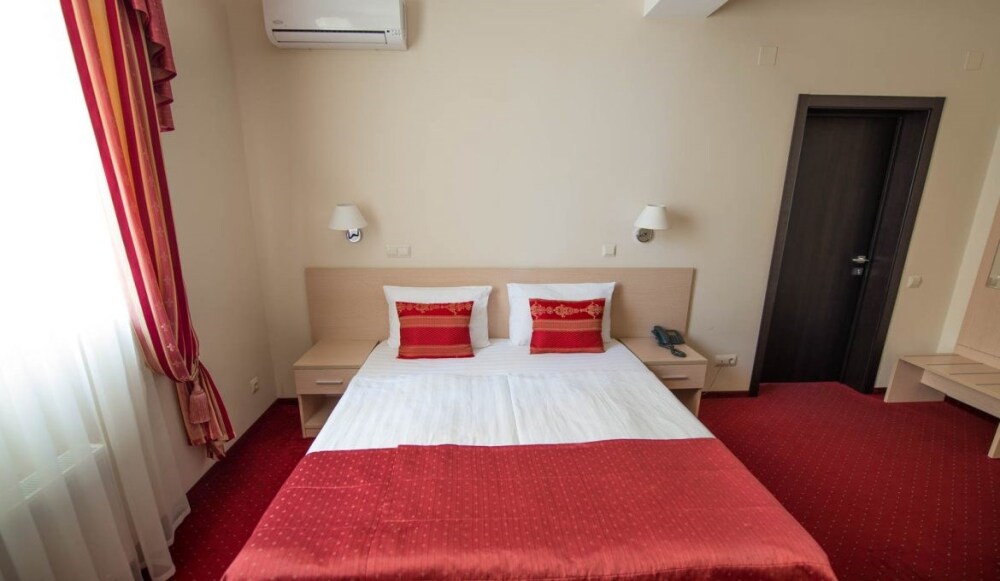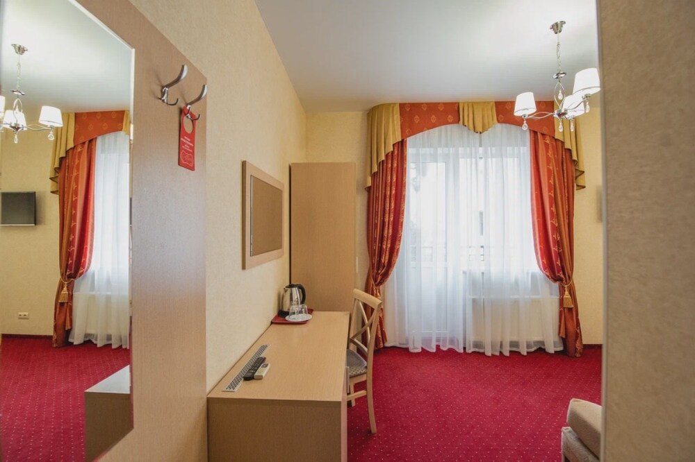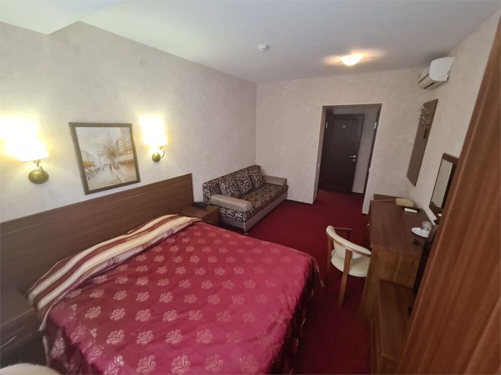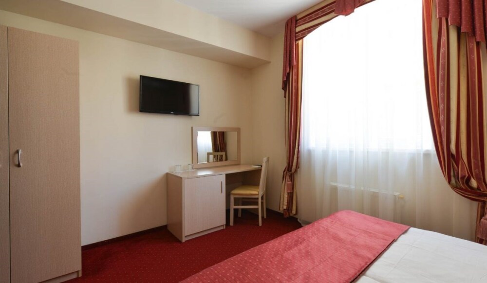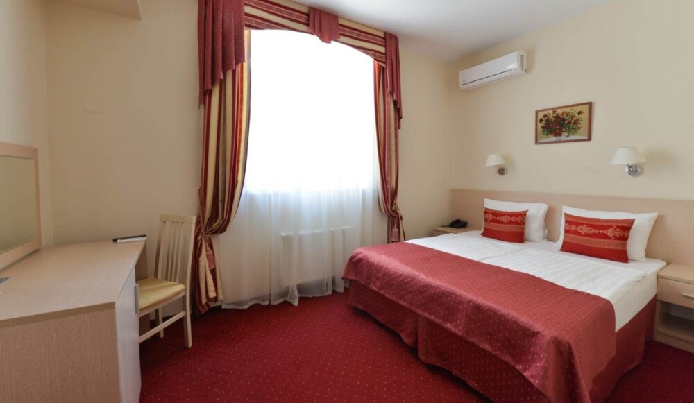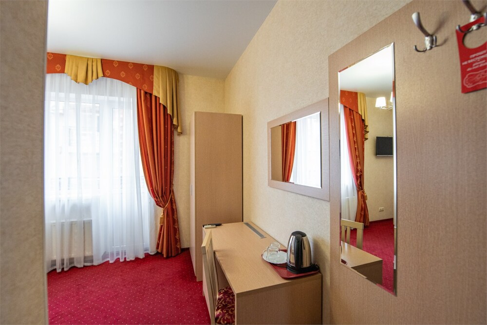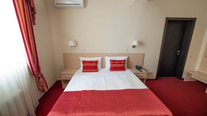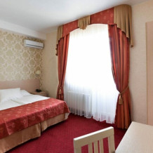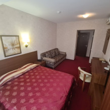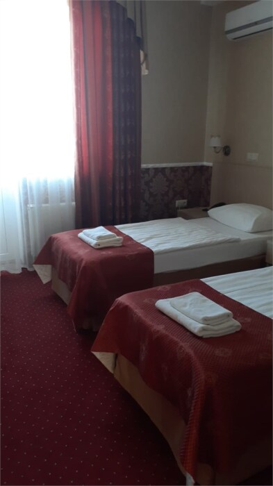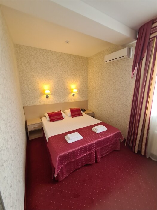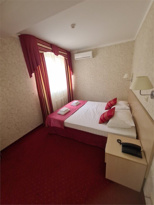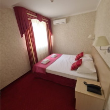 Номера выполнены в бежево / бордовых оттенках, без балкона (16 кв.м) Номера рассчитаны на 2-х гостей, (возможность размещение ребенка до 3х лет без предоставления места).