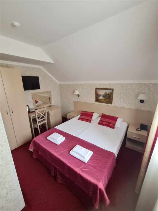 Номер с двуспальной французской кроватью, или двумя одноместными кроватями. Возможны номера с дополнительной диван-кроватями.
