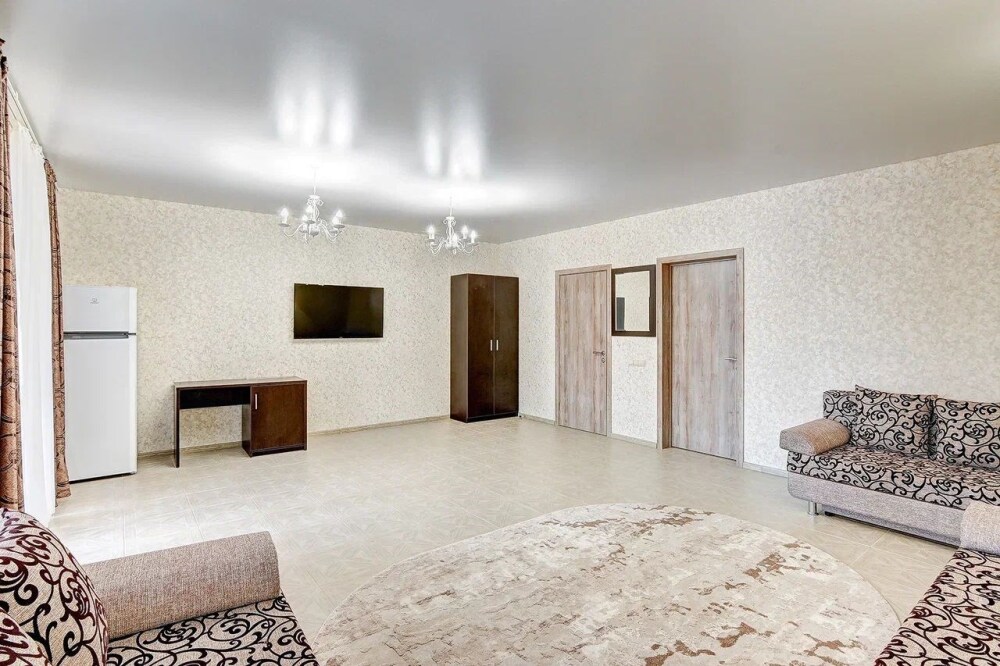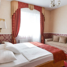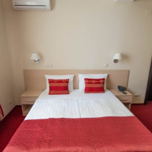Номера с размещением на кровати двуспальной или двух односпальных, на двух спальном диван-кровати (для 3-го и 4-го гостей ), а так же возможность размещение ребенка до 3-х лет без предоставления места, и с установкой дополнительного места в виде евро–раскладушки для пятого гостя.