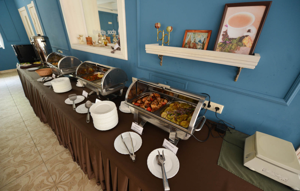 На территории отеля работает ресторан (по системе шведский стол, пансион, полупансион), где можно вкусно и недорого поесть.