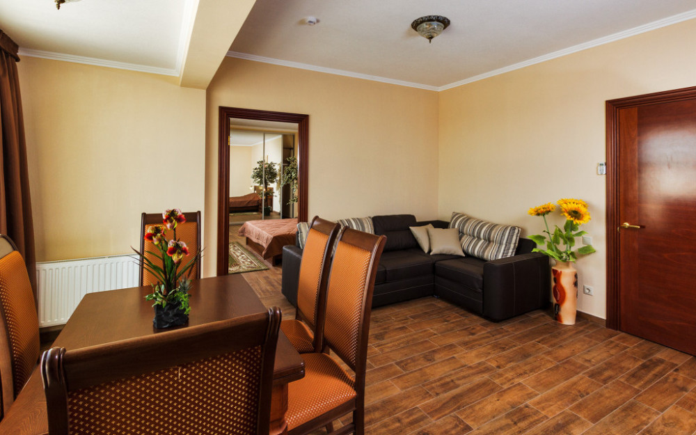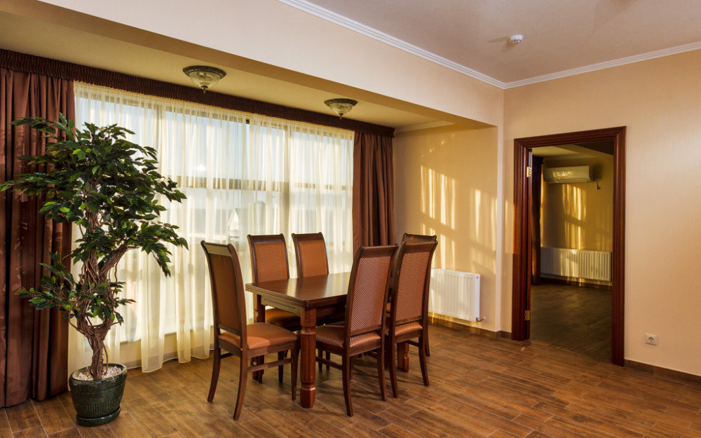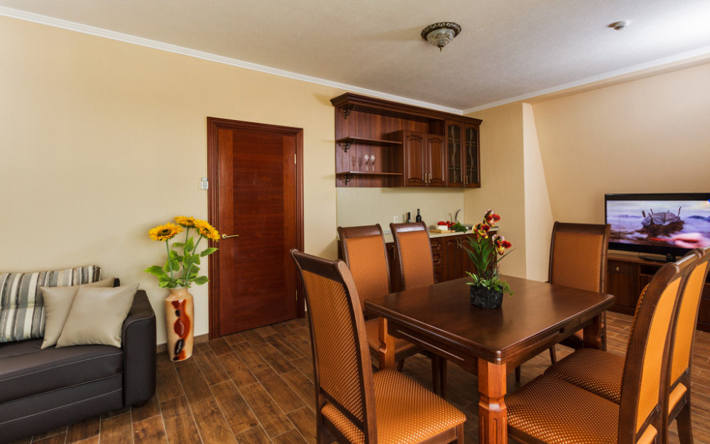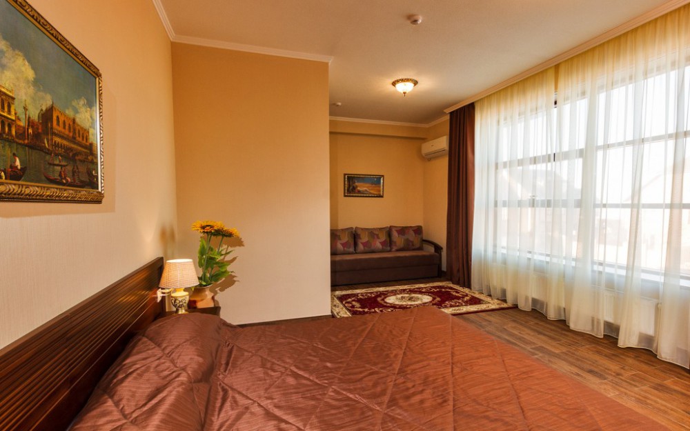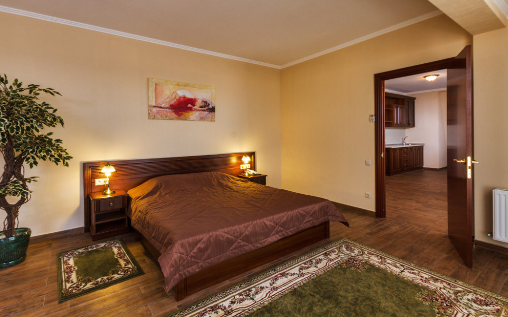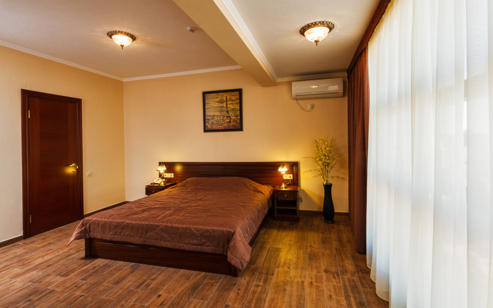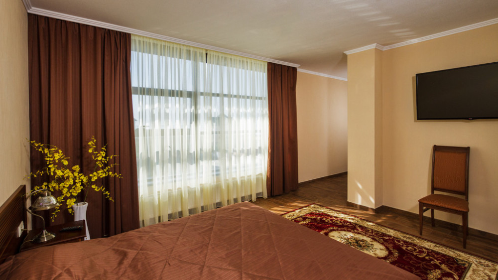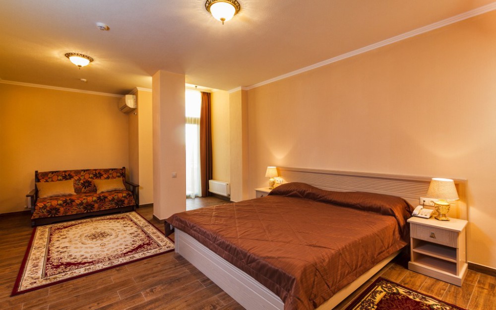 Отель включает в себя три основных комплекса: Центральный, Пляжный и Банный. В каждом из этих комплексов предусмотрен разноплановый номерной фонд — уютные одно-, двух- и трехкомнатные гостиничные номера, интерьерный дизайн которых разработан с учетом расположения и предназначения каждого комплекса. Номера оборудованы современной добротной мебелью, бытовой техникой, сейфами, санузлами с биде, предусмотрено бесплатное пользование Wi-Fi.