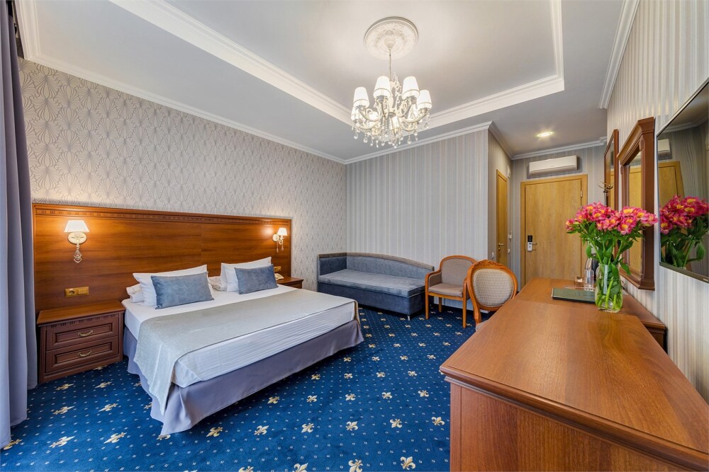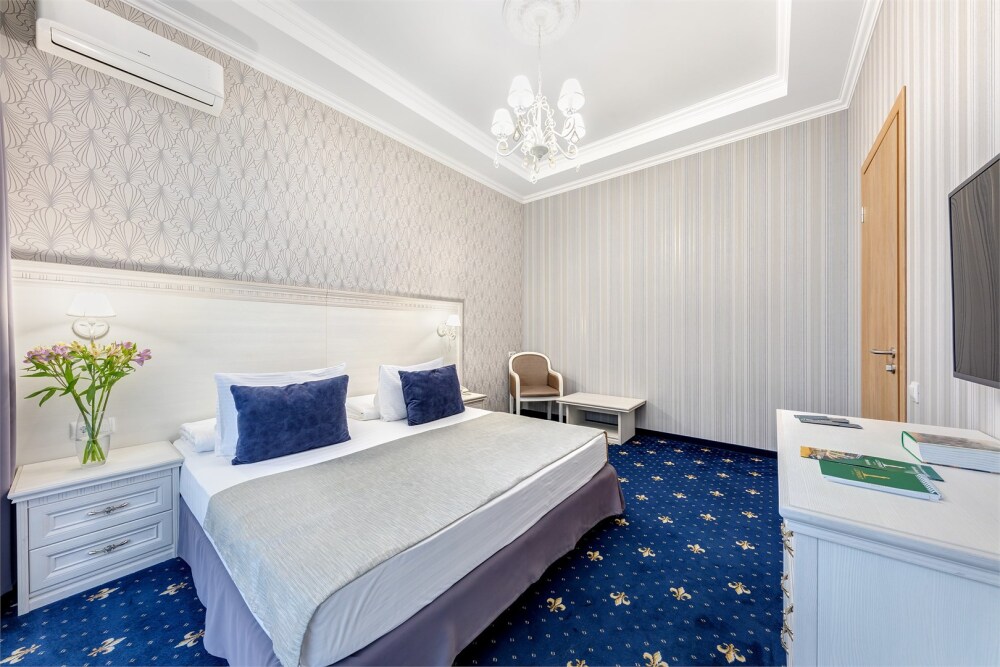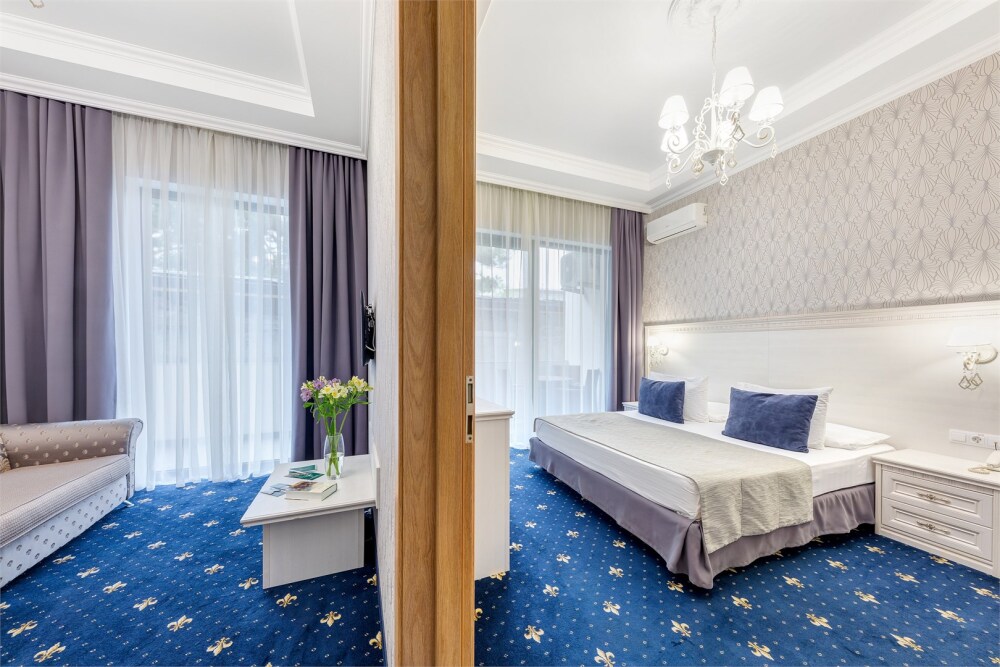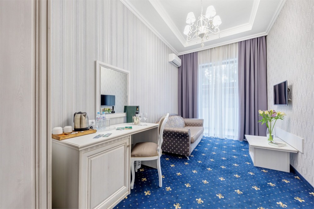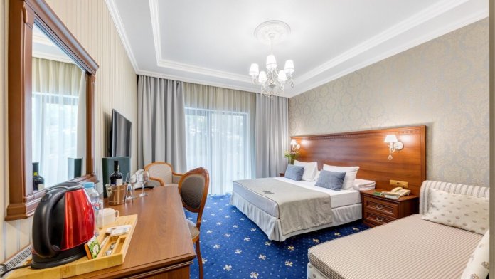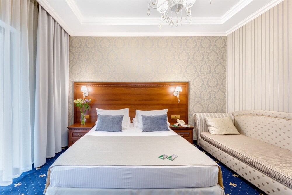 Высокий уровень сервиса обеспечивает комфортное проживание. Новых постояльцев ожидают номера различных категорий, оснащенные кондиционером, спутниковым TV, мини-баром и телефоном. Оформлены в неповторимом европейском стиле, некоторые категории оснащены уютными балконами. Мы обеспечиваем каждый номер приятными пополняемыми мелочами, но даже если Вы забудет взять с собой какую-то деталь (например расческу, приборы и т.д.), мы постараемся Вам ее предоставить.
