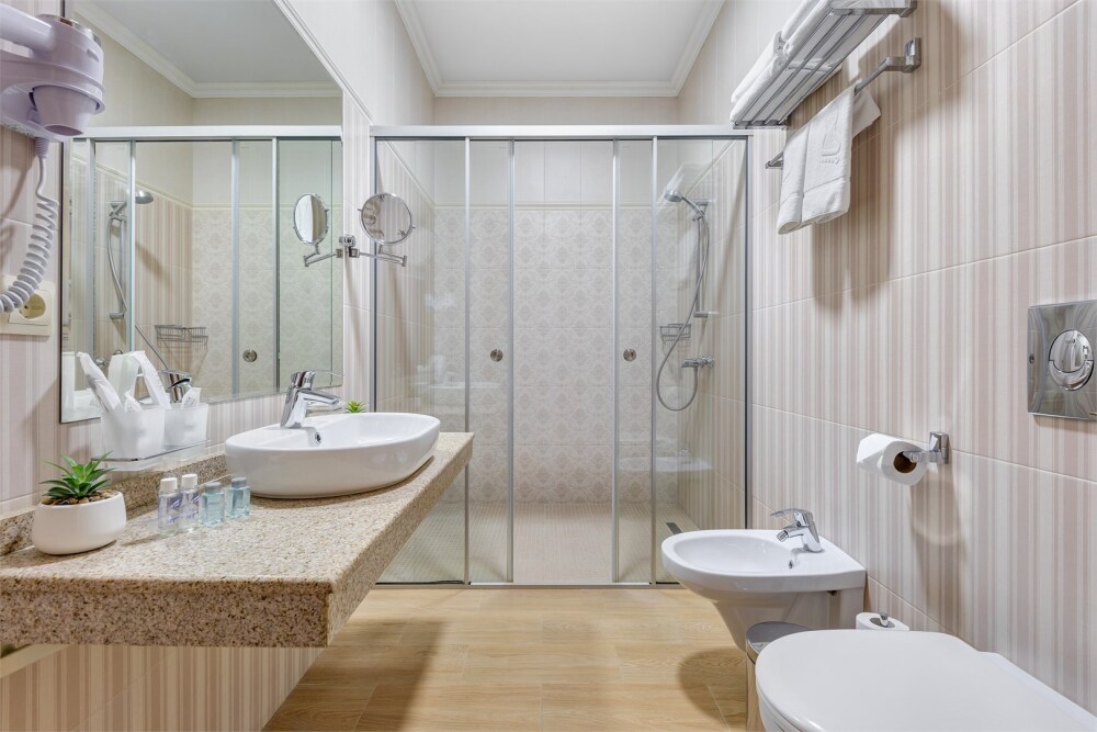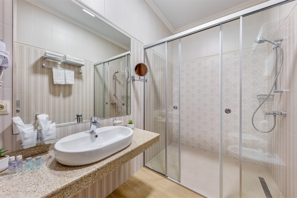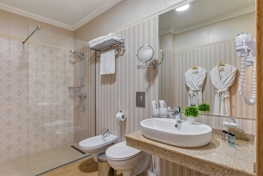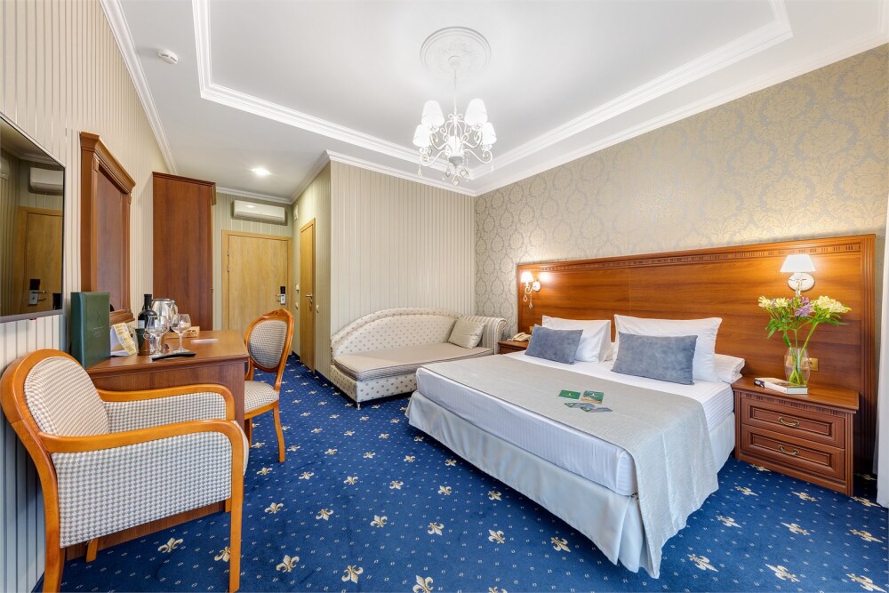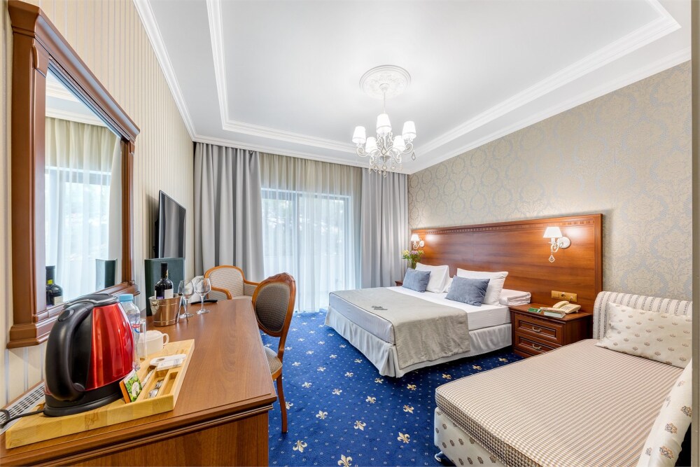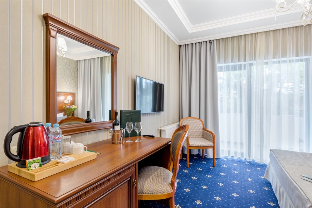 Высокий уровень сервиса обеспечивает комфортное проживание. Новых постояльцев ожидают номера различных категорий, оснащенные кондиционером, спутниковым TV, мини-баром и телефоном. Оформлены в неповторимом европейском стиле, некоторые категории оснащены уютными балконами. Мы обеспечиваем каждый номер приятными пополняемыми мелочами, но даже если Вы забудет взять с собой какую-то деталь (например расческу, приборы и т.д.), мы постараемся Вам ее предоставить.