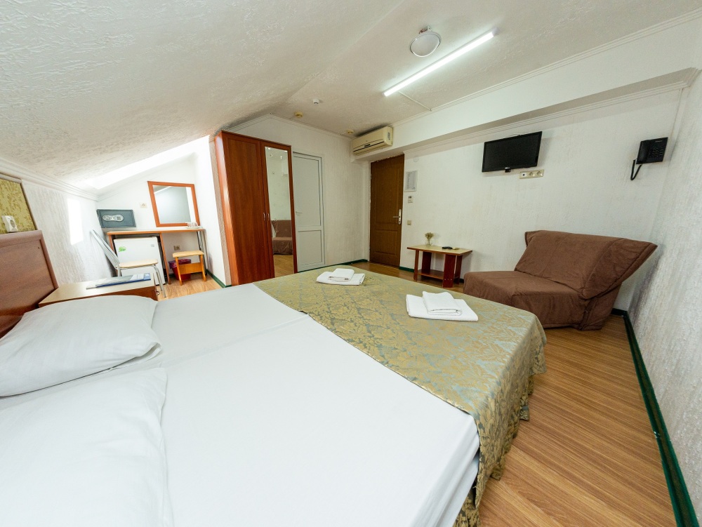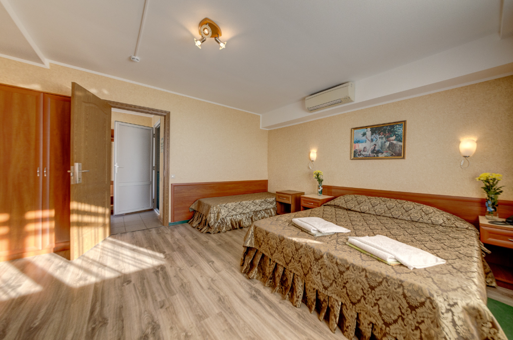 Номера располагаются на 2-4 этаже. Уютные однокомнатные номера с 3 односпальными кроватями или 2 односпальными и 1 двуспальной кроватью. Просторные номера оборудованы всем необходимым для комфортного отдыха гостей.