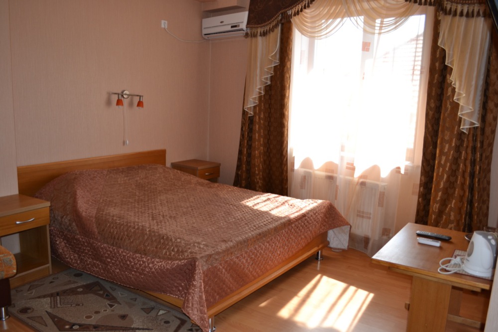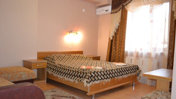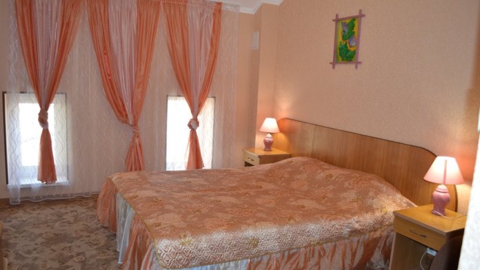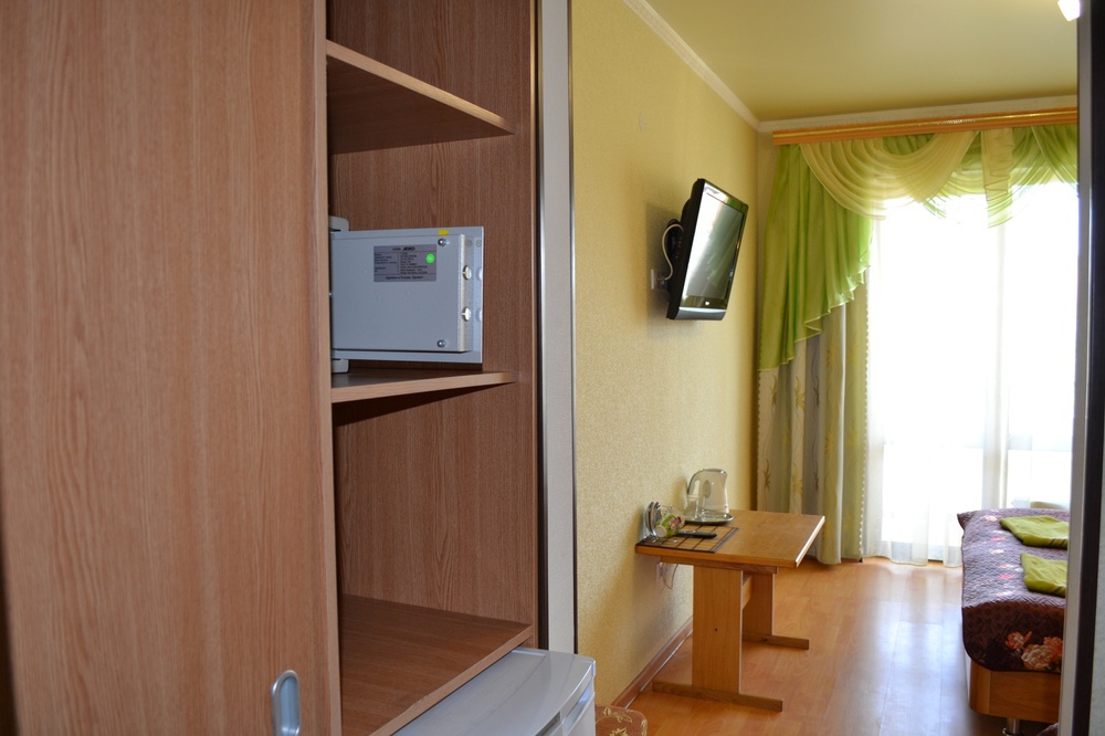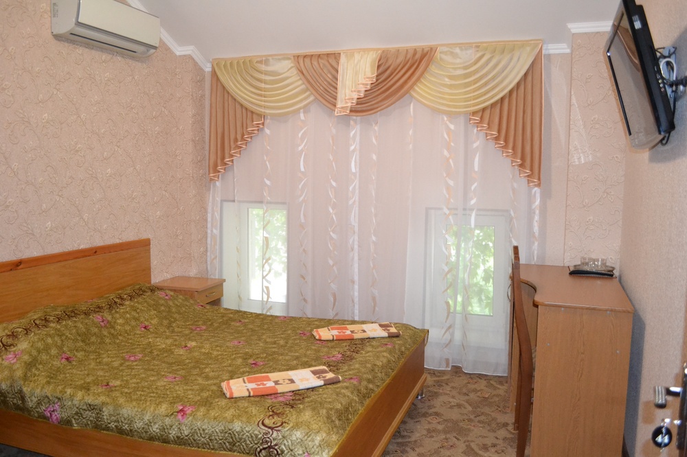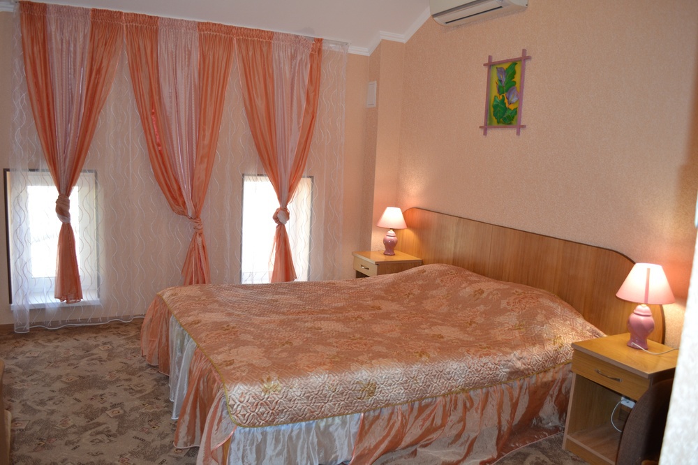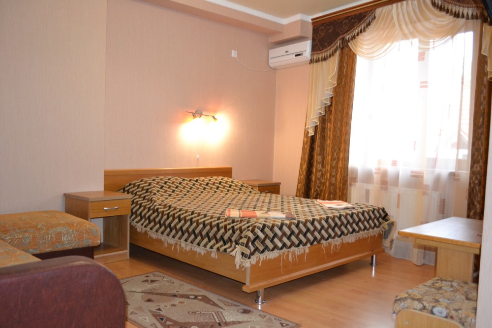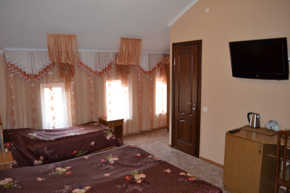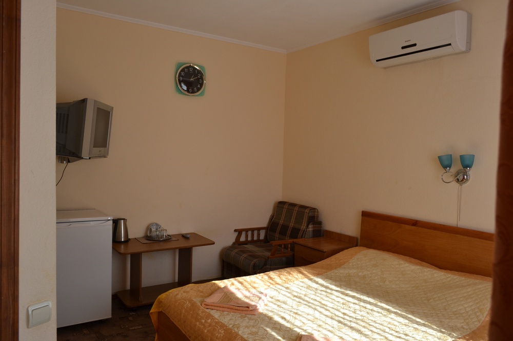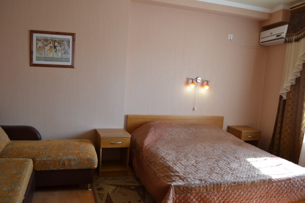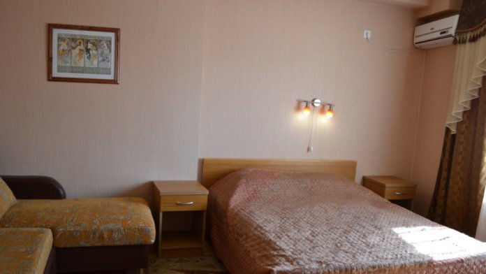 В отеле «Патио» к вашим услугам 2-х и 3-х местные однокомнатные номера стандарт и два двухкомнатных номера класса люкс. Все номера оборудованы телевизором, холодильником, сплит-системой, сейфом, феном.