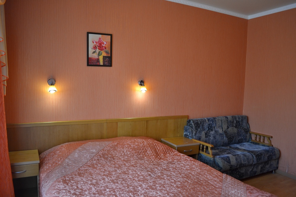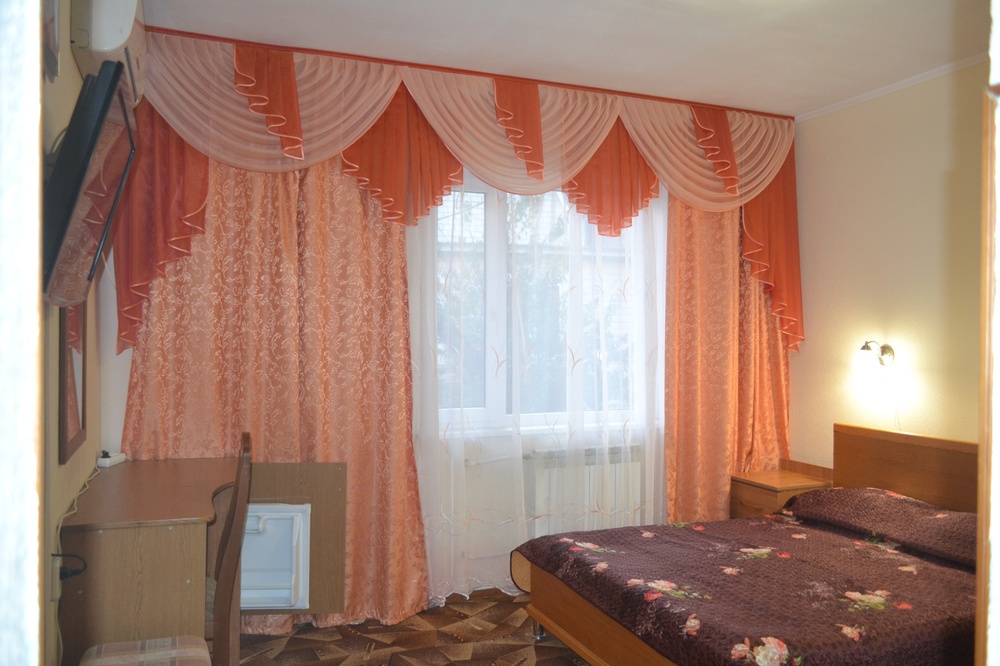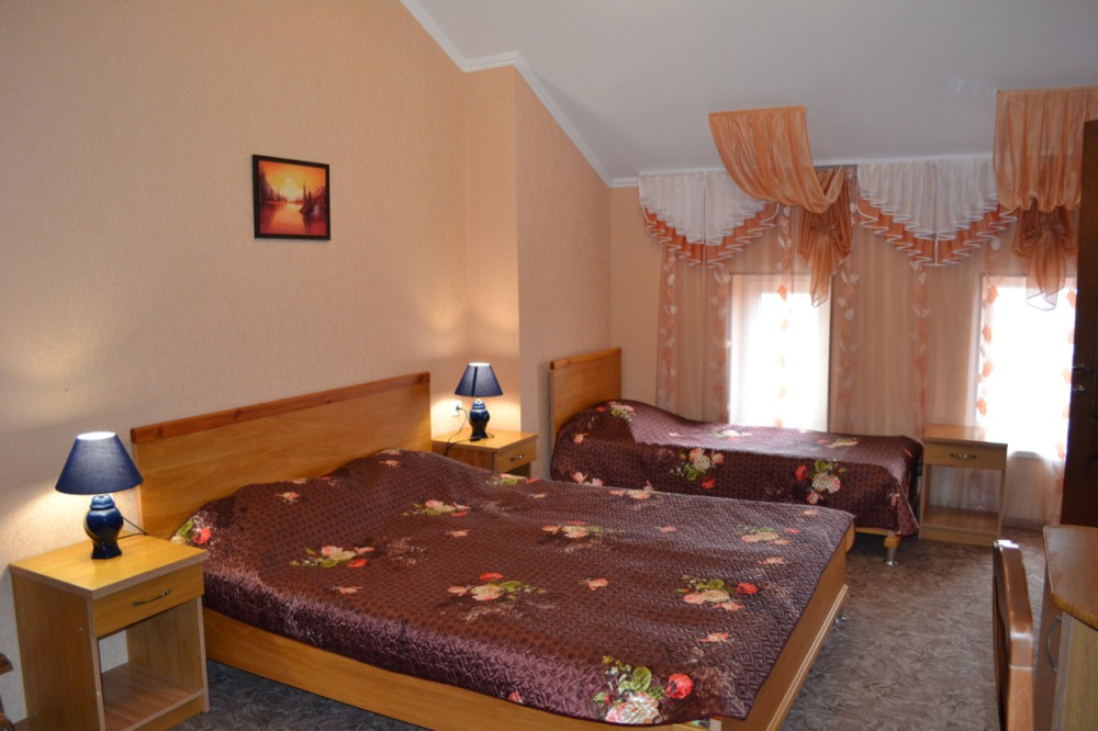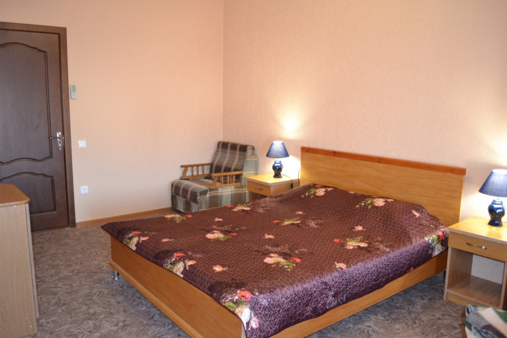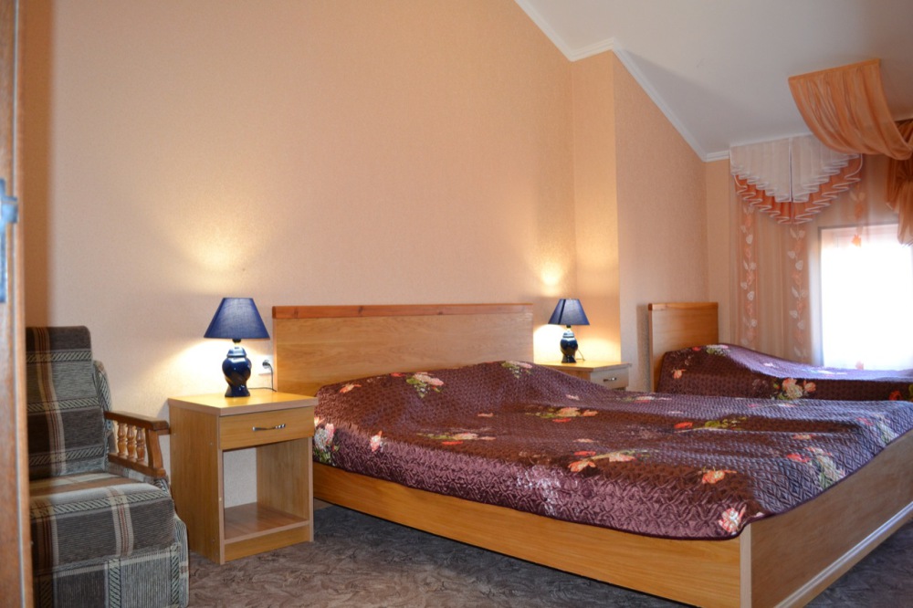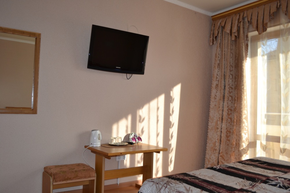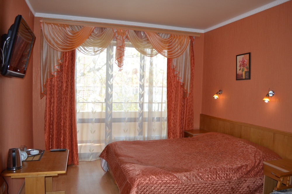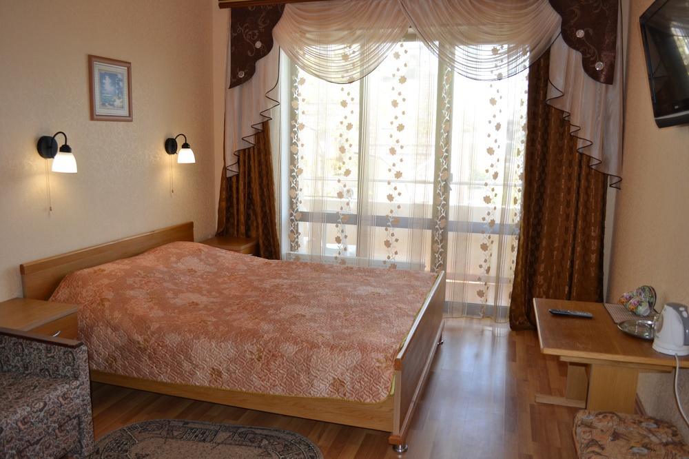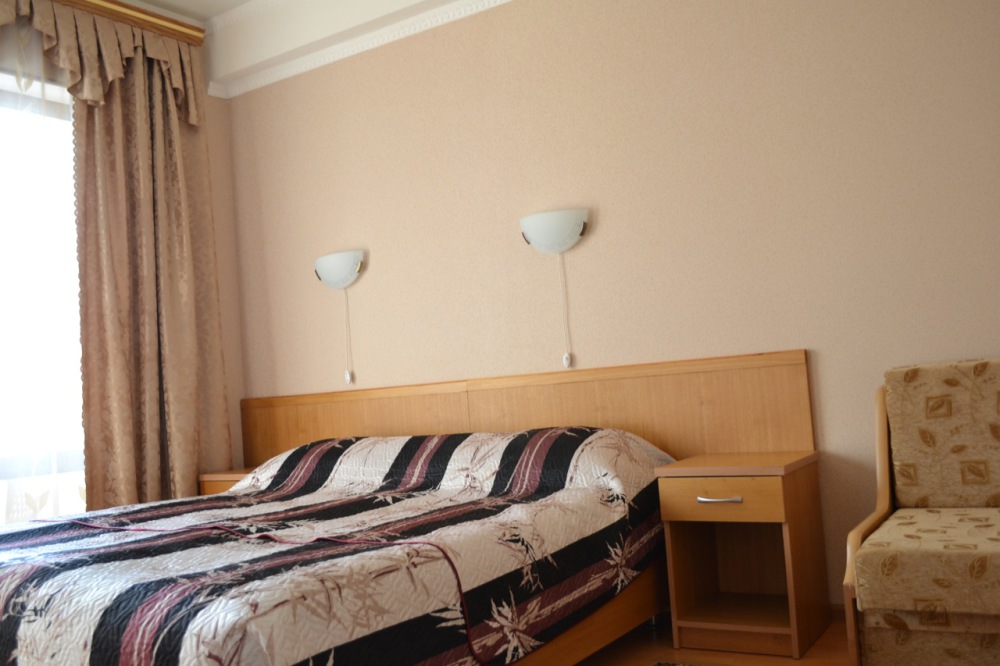 В отеле «Патио» к вашим услугам 2-х и 3-х местные однокомнатные номера стандарт и два двухкомнатных номера класса люкс. Все номера оборудованы телевизором, холодильником, сплит-системой, сейфом, феном.