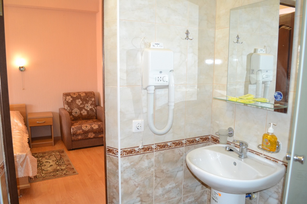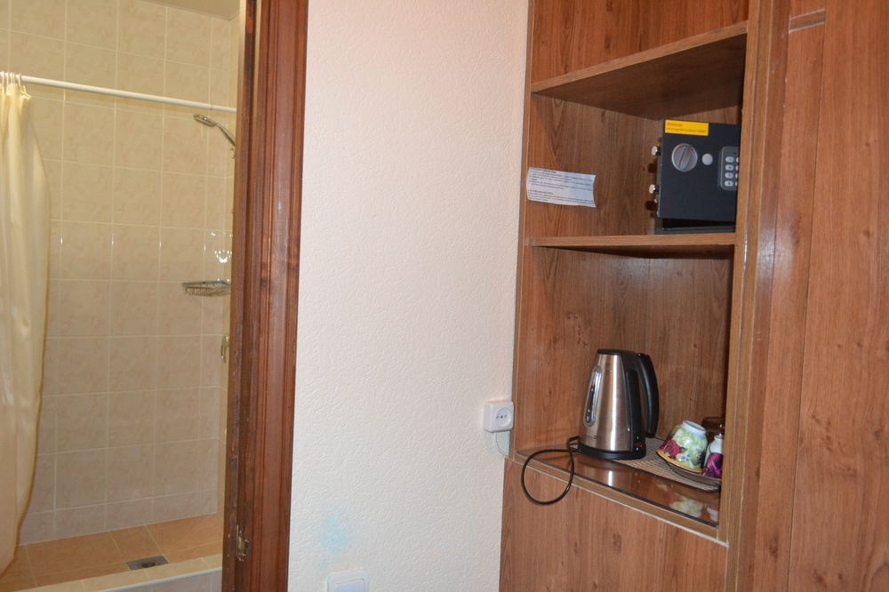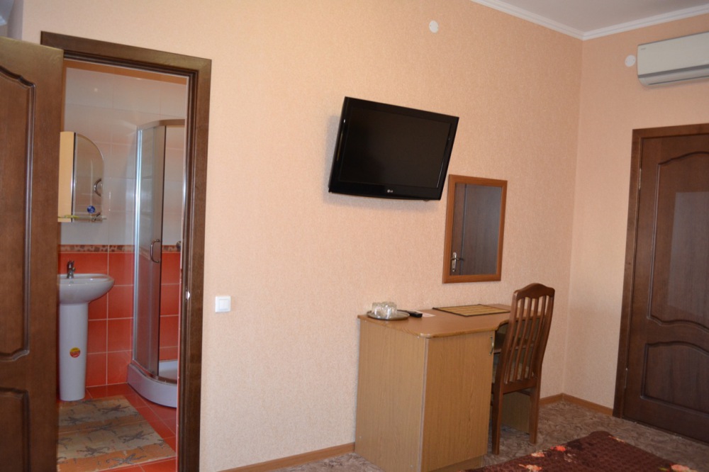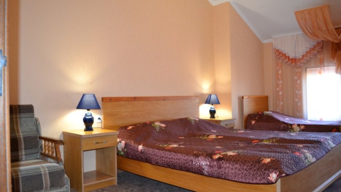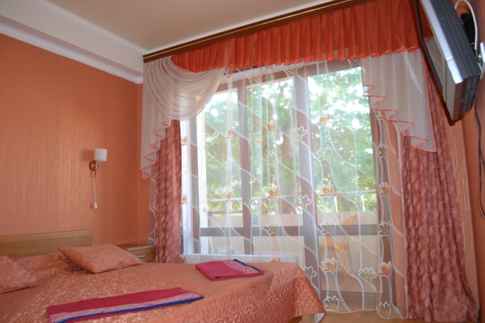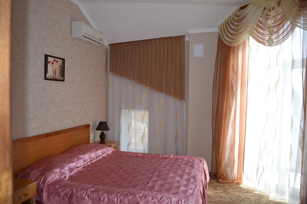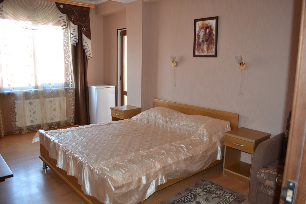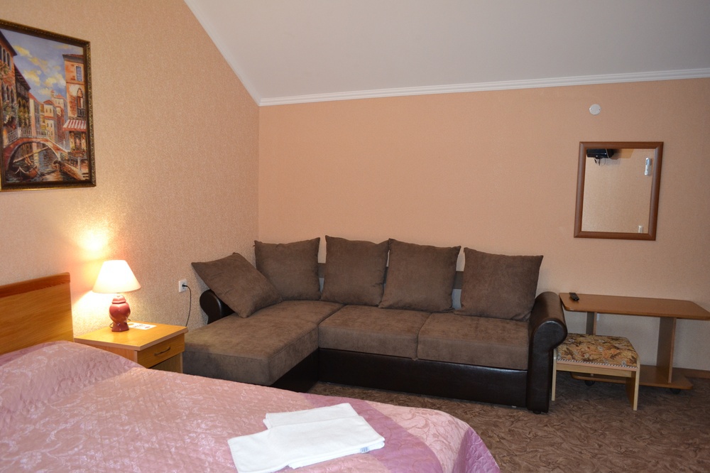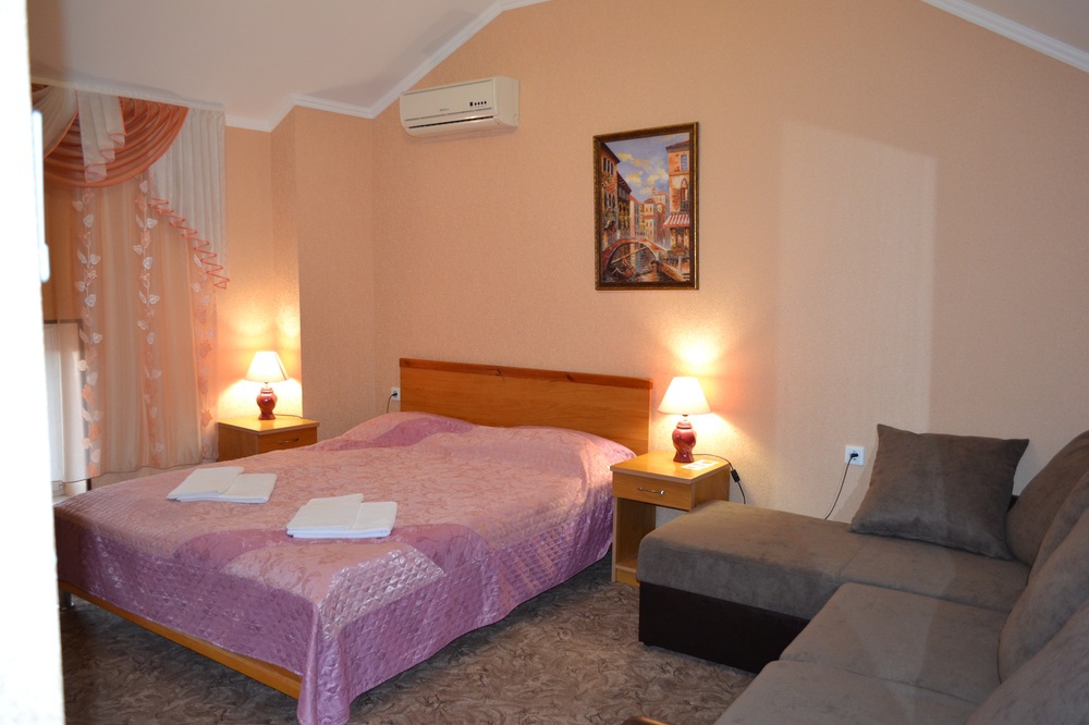 В отеле «Патио» к вашим услугам 2-х и 3-х местные однокомнатные номера стандарт и два двухкомнатных номера класса люкс. Все номера оборудованы телевизором, холодильником, сплит-системой, сейфом, феном.