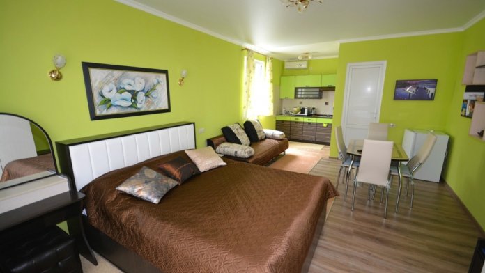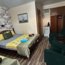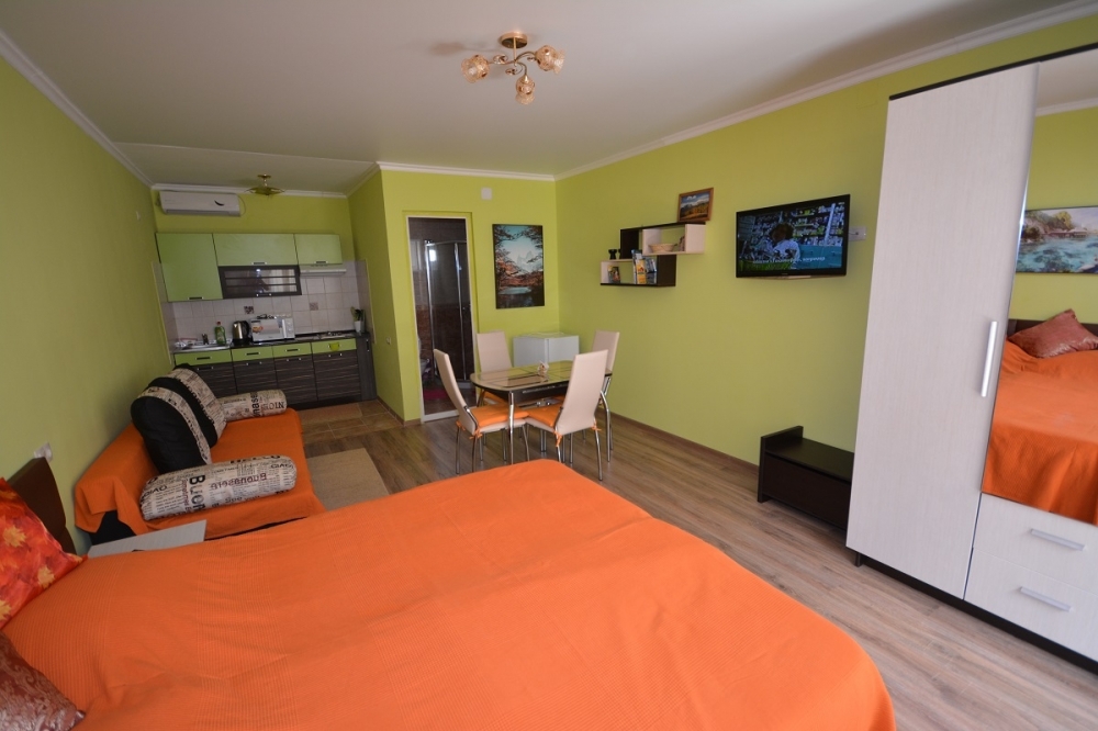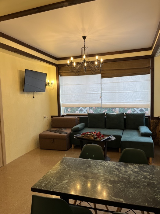 Просторные апартаменты, для комфортного отдыха. В каждой комнате свой кондиционер и телевизор. Кухня укомплектована всем необходимым, посуда, утварь для приготовления пищи, бокалы для напитков. Из удобств посудомоечная машина, стиральная машина, гладильная доска и утюг.