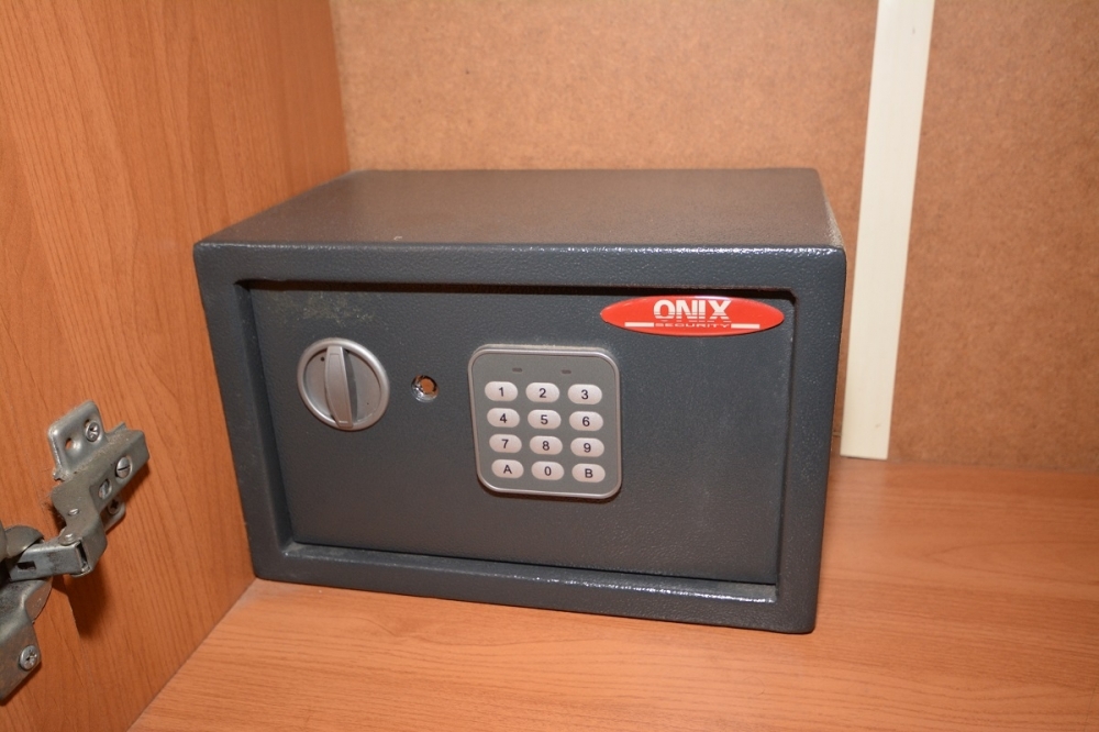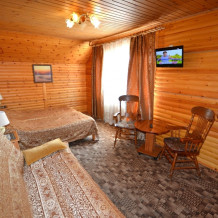 Двуспальная или две односпальные кровати, телевизор, холодильник, кондиционер, сейф. В ванной: душ, туалет, раковина, фен, набор полотенец, мыло, шампунь.
