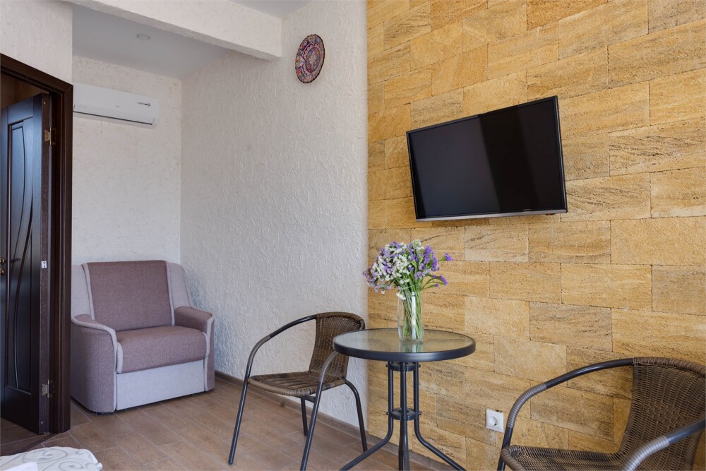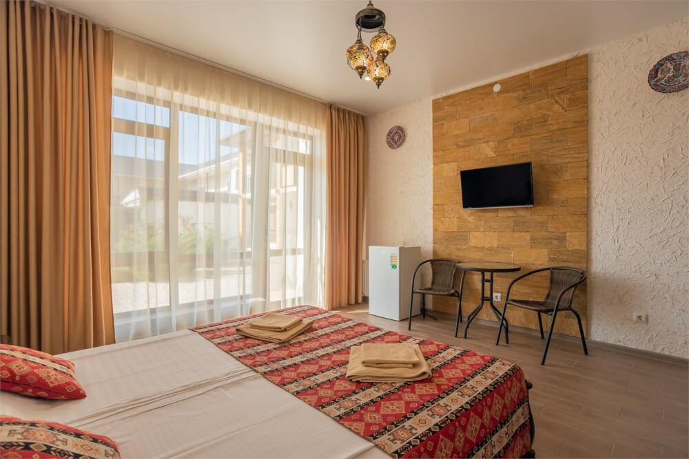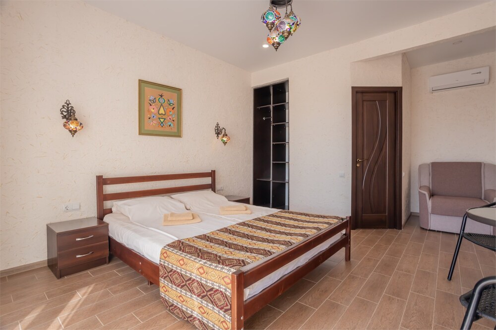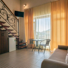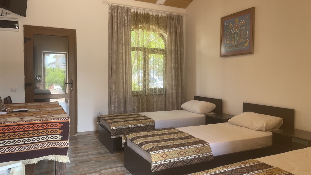 Это идеальное место для людей, ценящих тишину и покой. До моря 3 минуты не спешного шага. Все наши номера оборудованы удобствами (туалет, умывальник, душ). ТV, холодильник, кондиционер – в каждом номере.
