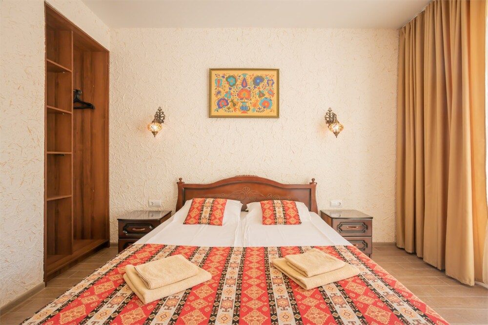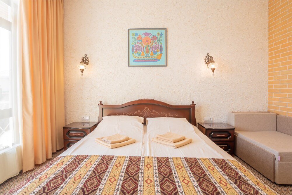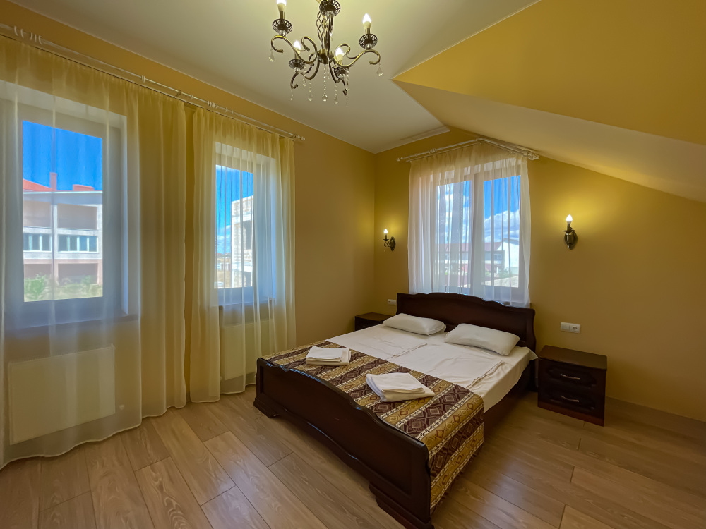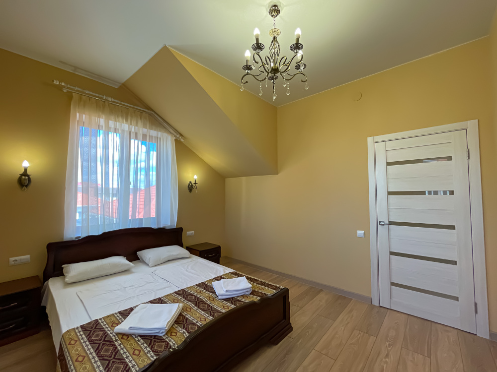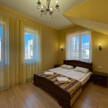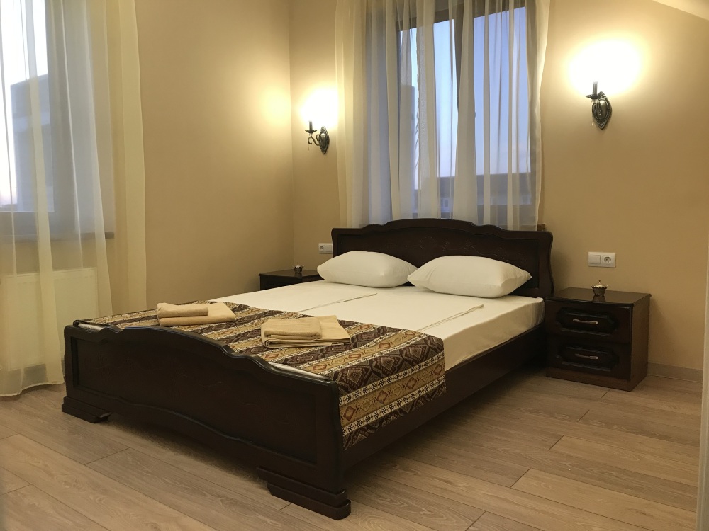 У нас есть все для комфортного отдыха: уютные двух и трехместные номера, внутренний двор, парковка. Вас приятно удивят комфорт и функциональность номеров, а гармоничный дизайн поможет расслабиться и погрузиться в атмосферу умиротворенности. Большая двухместная кровать с ортопедическим матрасом, ванна и большой телевизор не оставят Вас равнодушными.