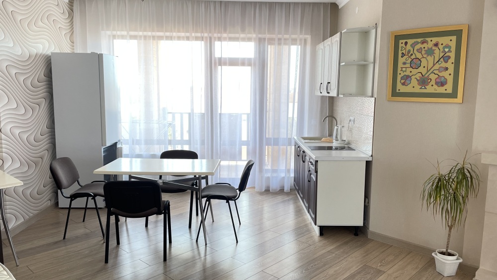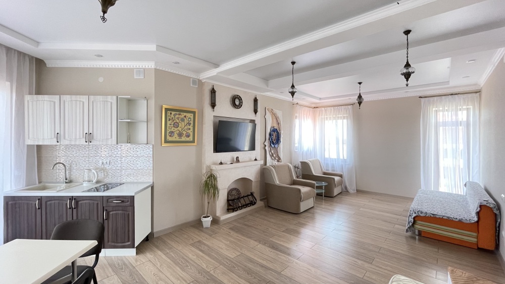 Двухкомнатные апартаменты в современном стиле. Оборудованная кухня , собственная ванная комната с душевой кабиной, туалетом и умывальником к Вашим услугам. Мы позаботились о каждой мелочи для Вашего удобства. В номере есть сейф.