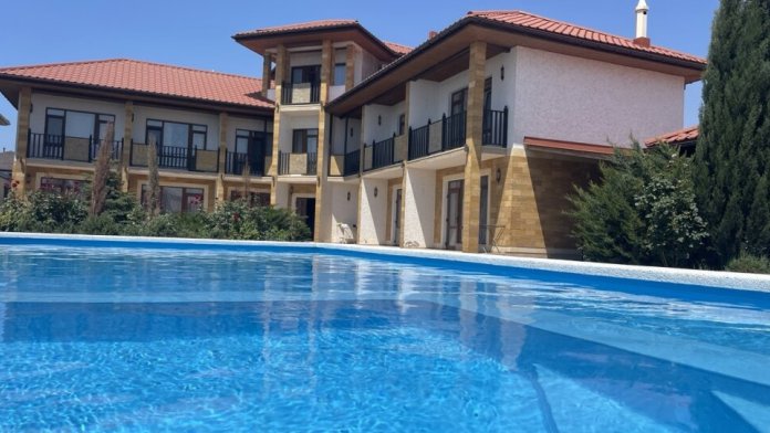На побережье Черного моря расположился этно-отель. Отель находится в современной тихой и уютной части микрорайона Заозерное на расстоянии 600 метров от берега Черного моря курорта Евпатория. И именно поэтому название нашего дома в переводе с крымско-татарского языка означает «Прибрежный Квартал». Создавая наш квартал, мы продумали в нем каждую деталь. Мы стараемся создать уникальную атмосферу Крымского этноколорита в сочетании с высоким европейским сервисом.