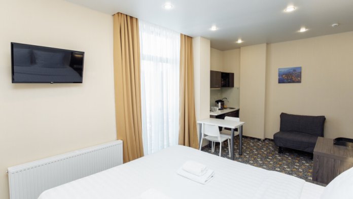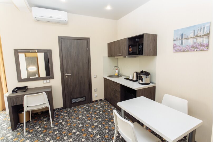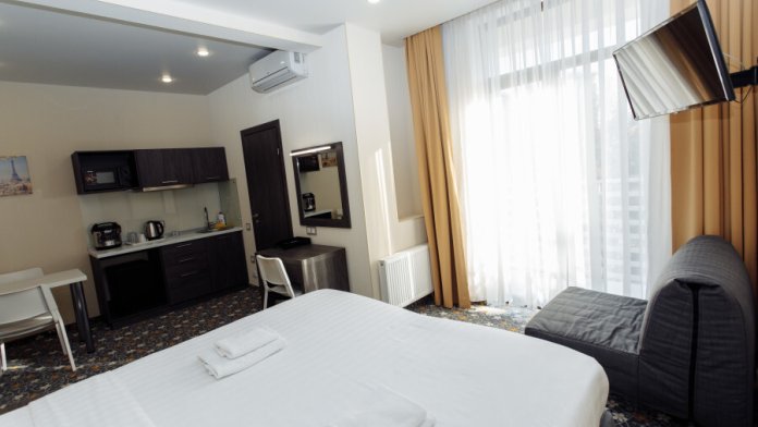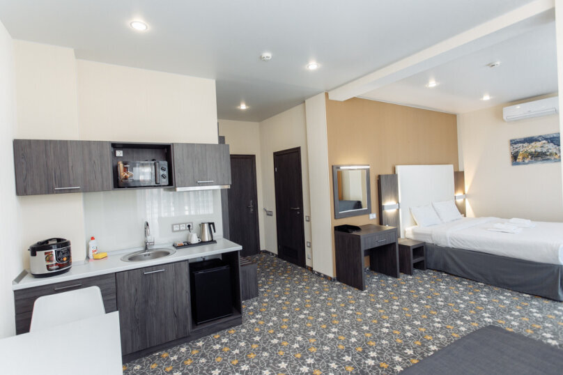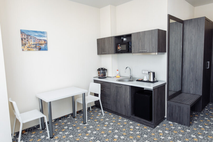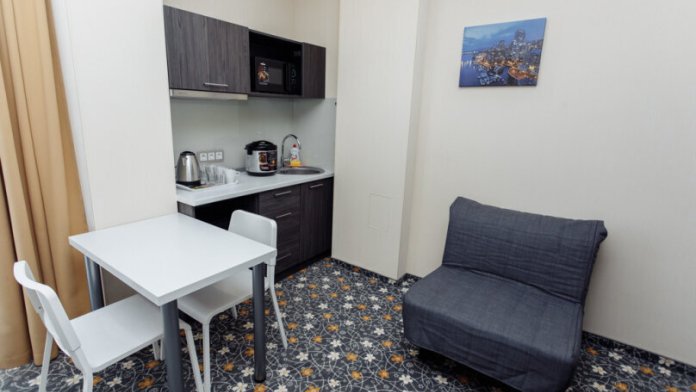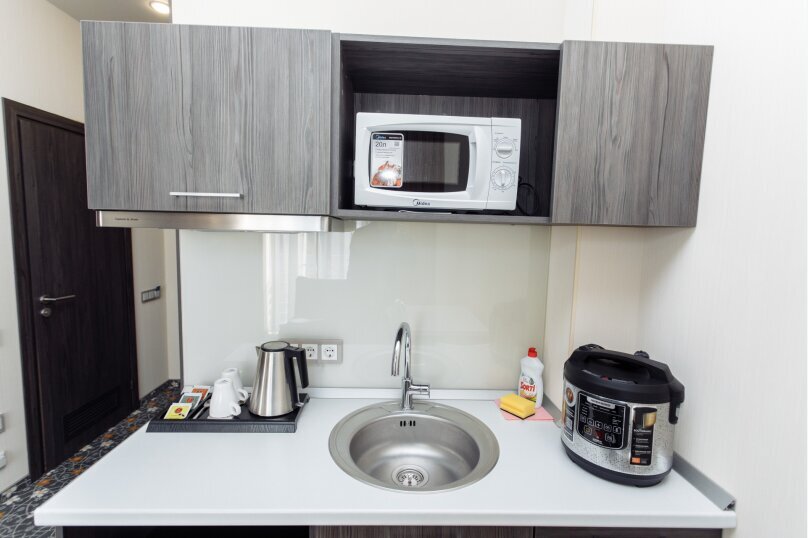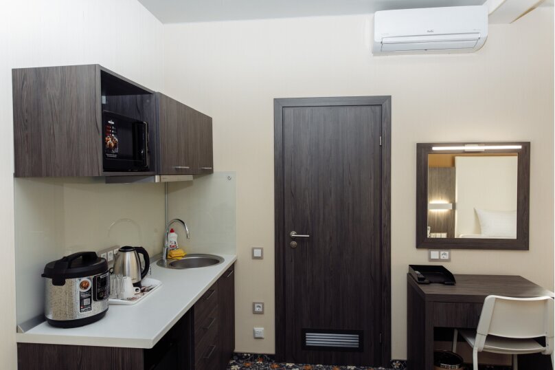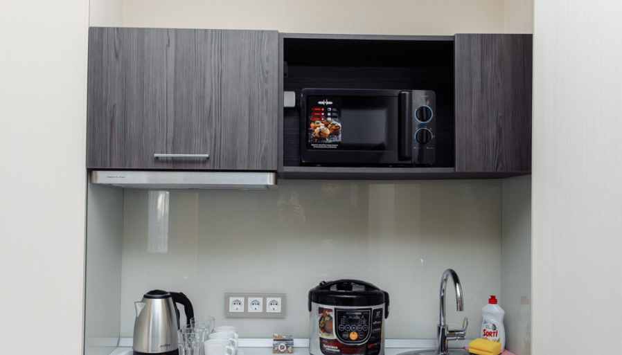 В номере есть мини-кухня с микроволновкой и мультиваркой.