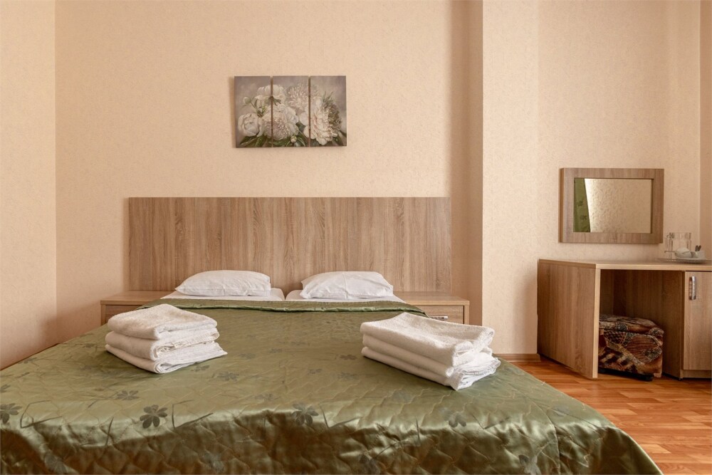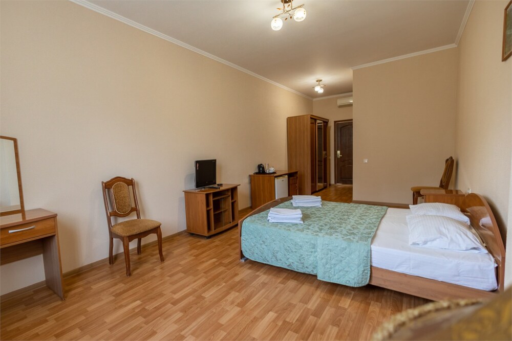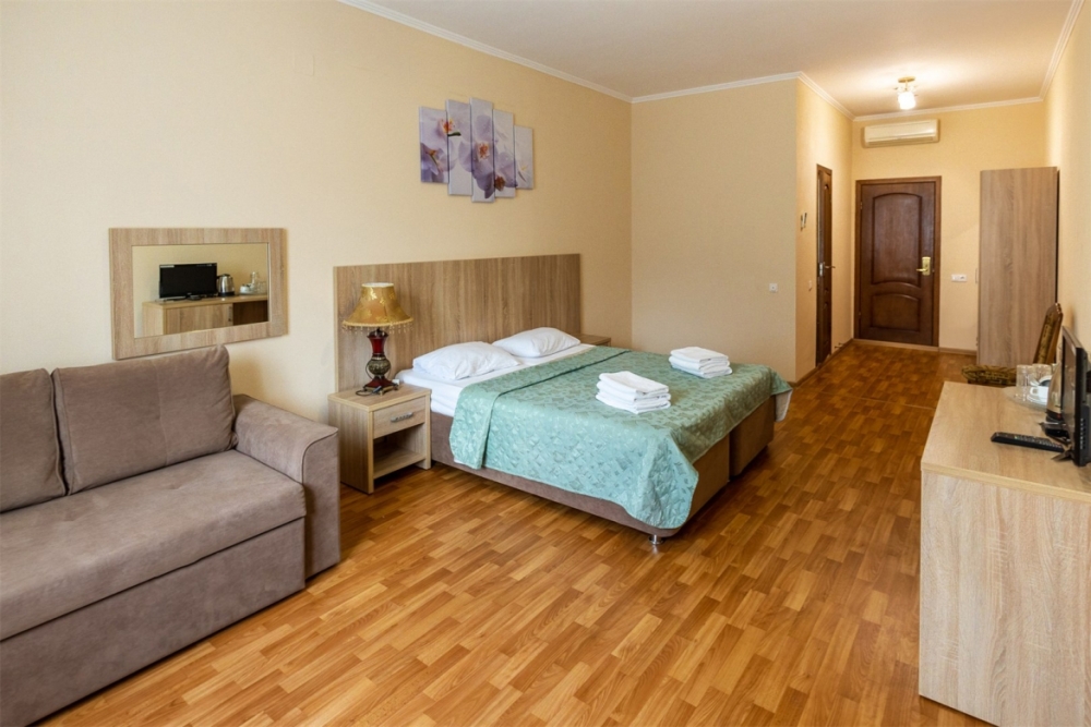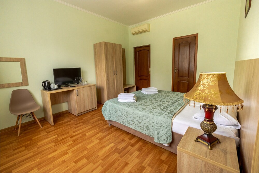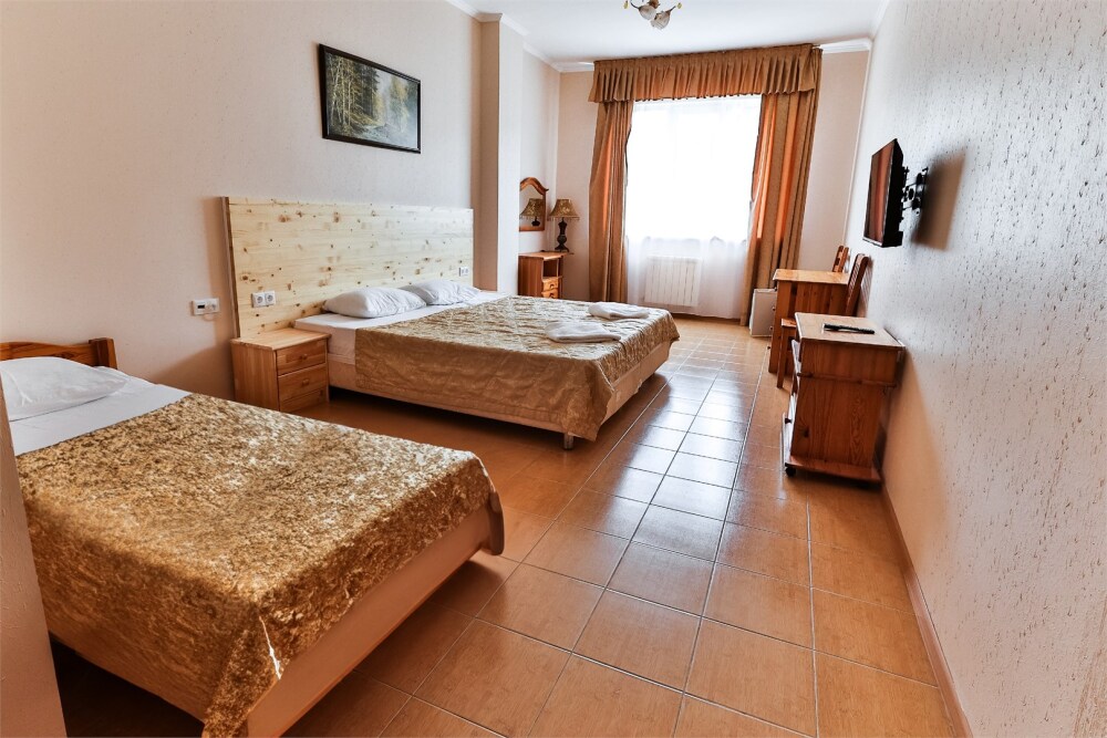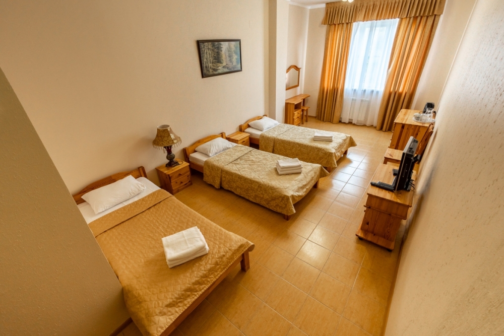 Комплектация номеров соответствует евростандарту уровня три звезды. При желании клиента в номере может быть установлена дополнительная мебель.