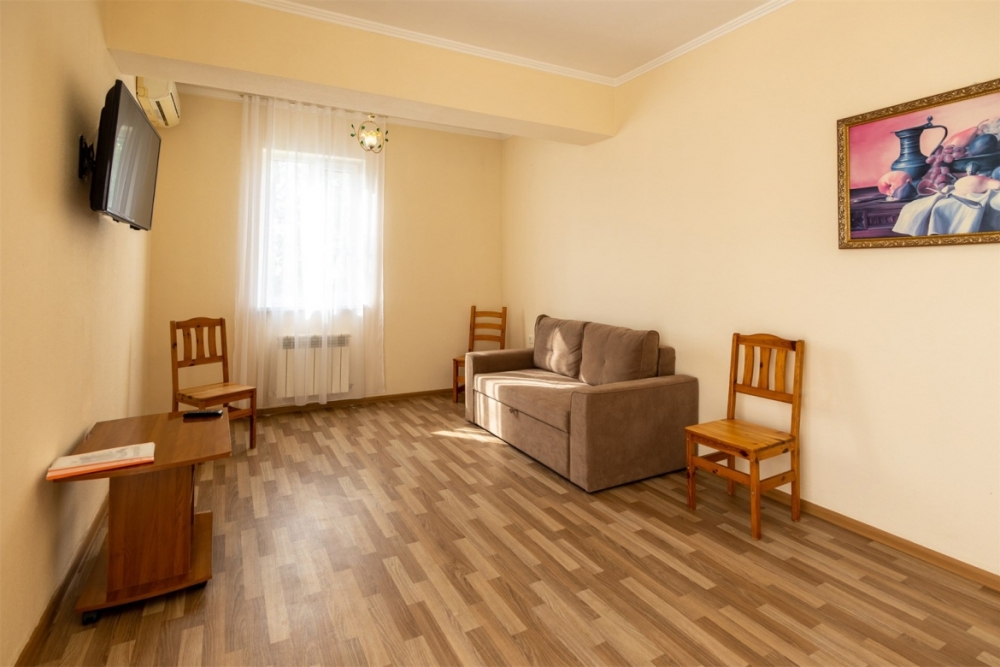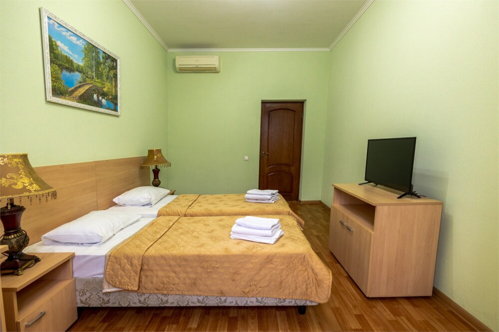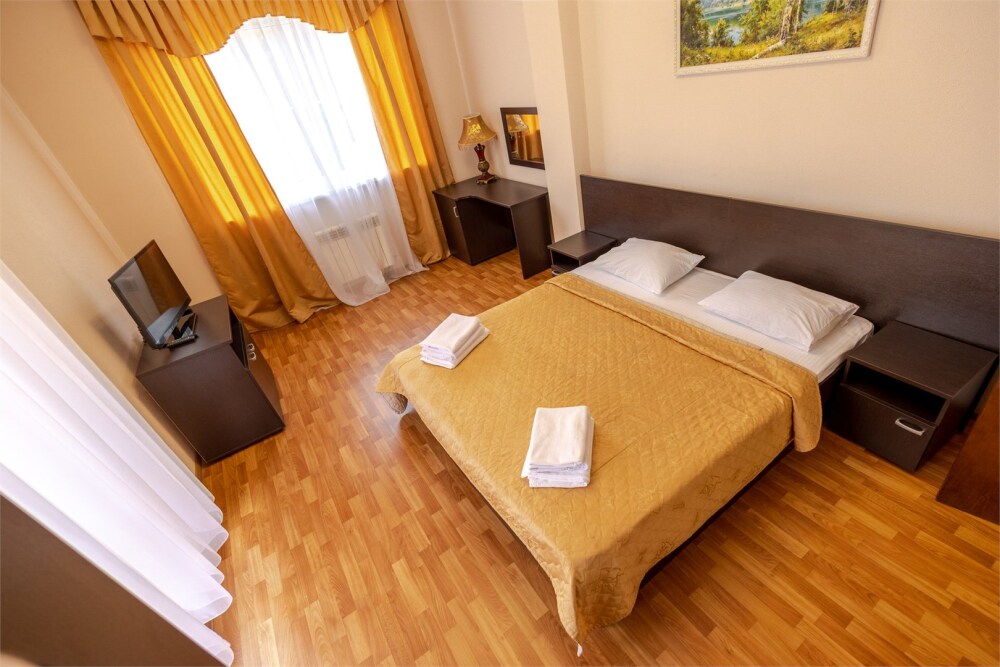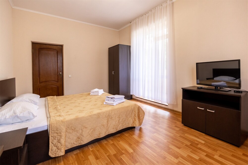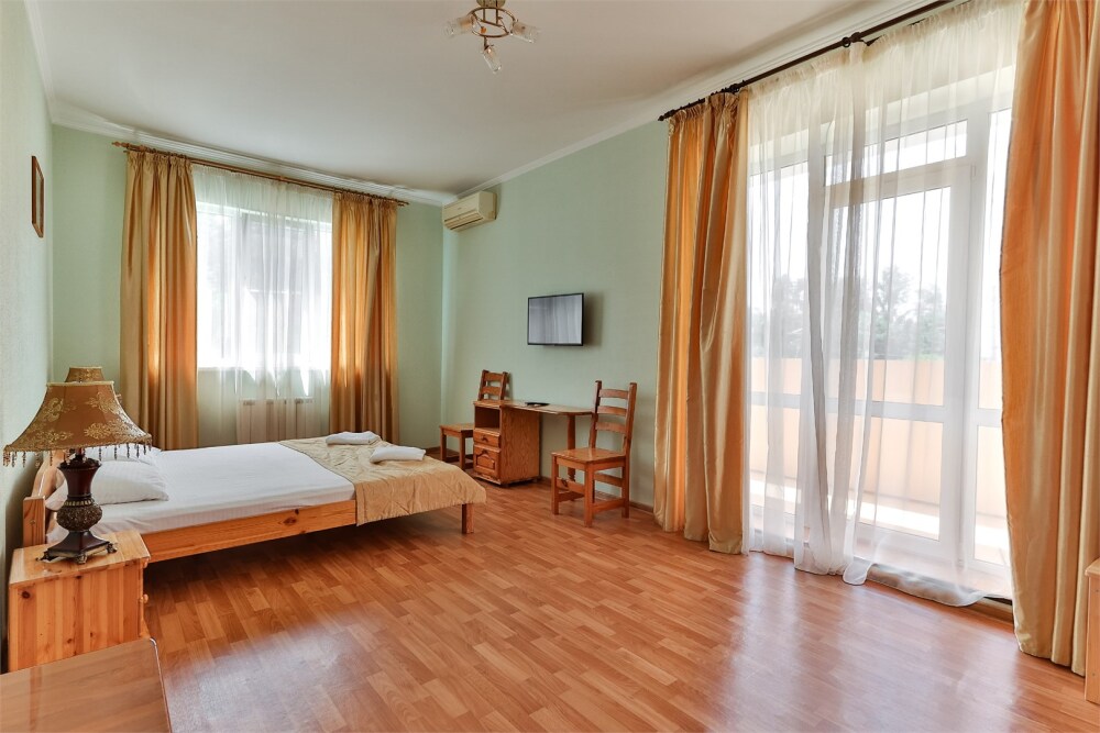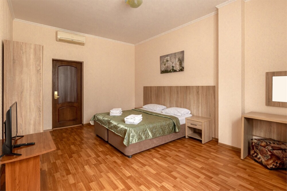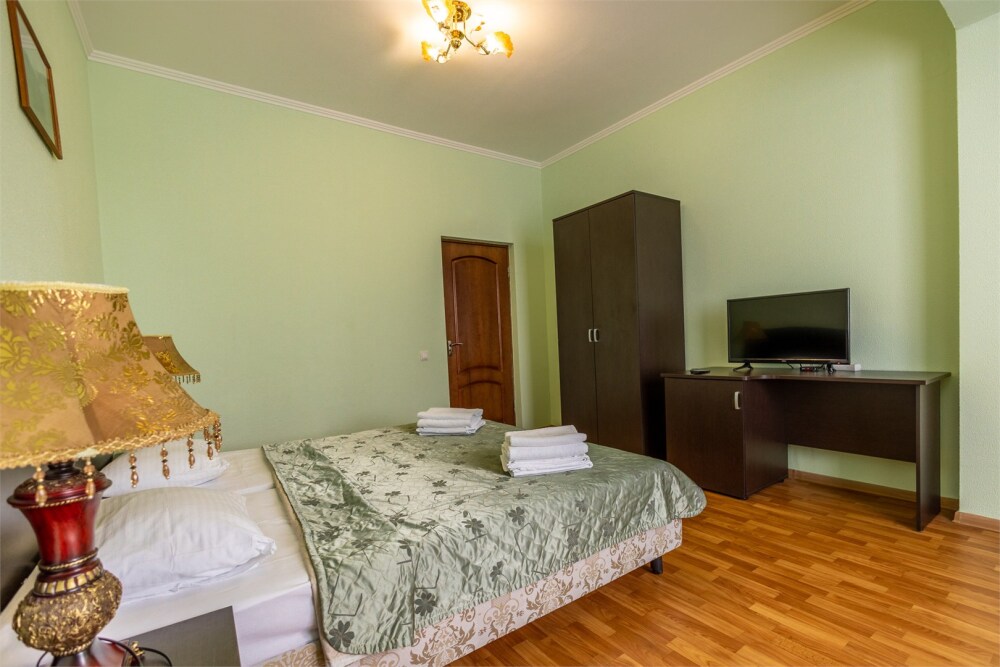 Комплектация номеров соответствует евростандарту уровня три звезды. При желании клиента в номере может быть установлена дополнительная мебель.