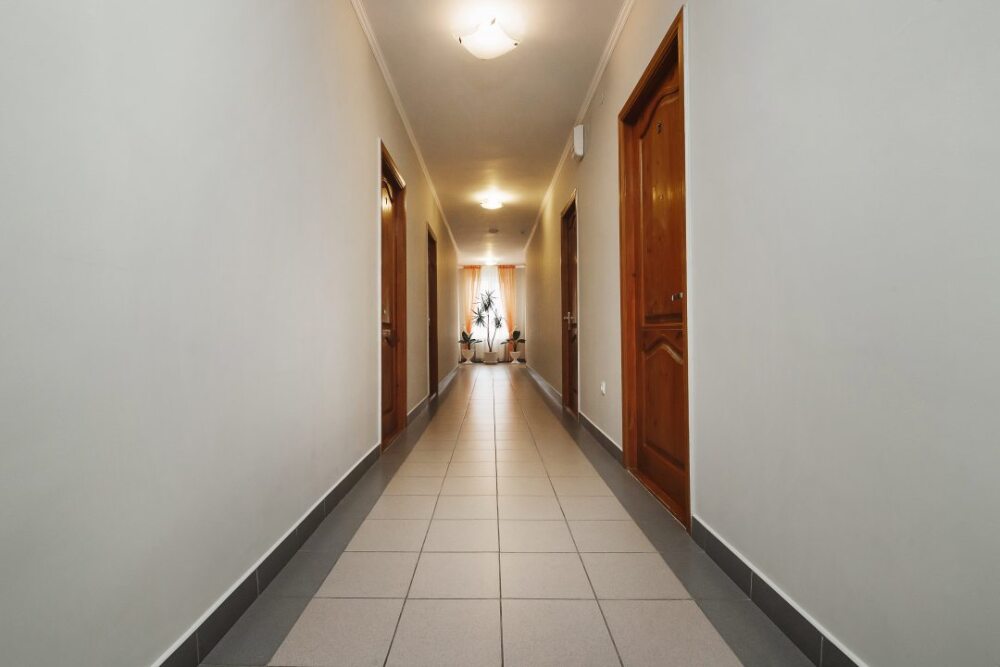 На этаже есть: гладильная доска, сушилка для белья и кулер со встроенным фильтром.