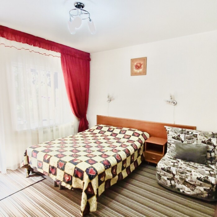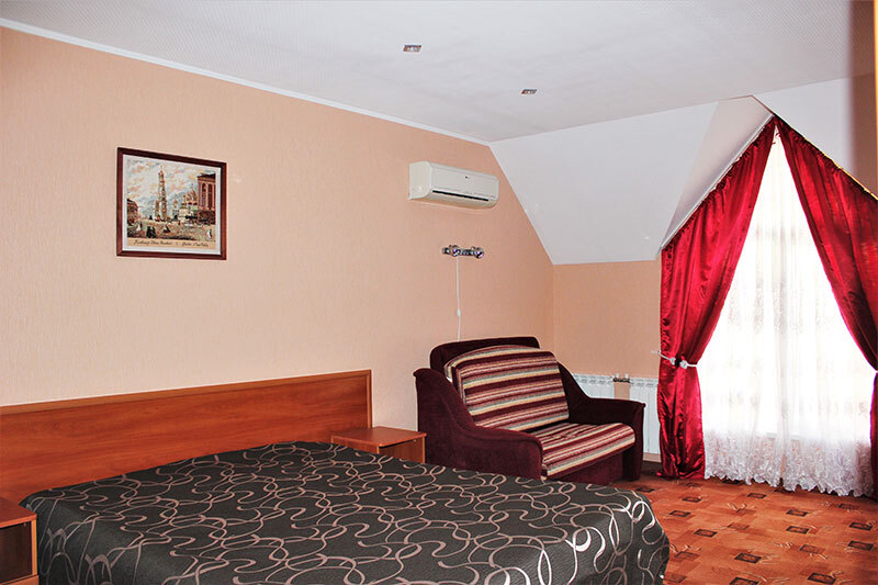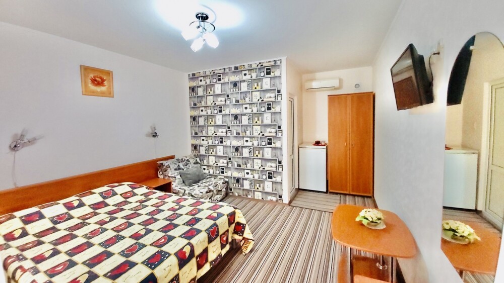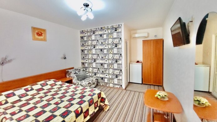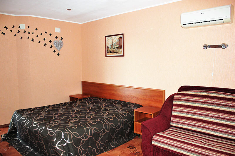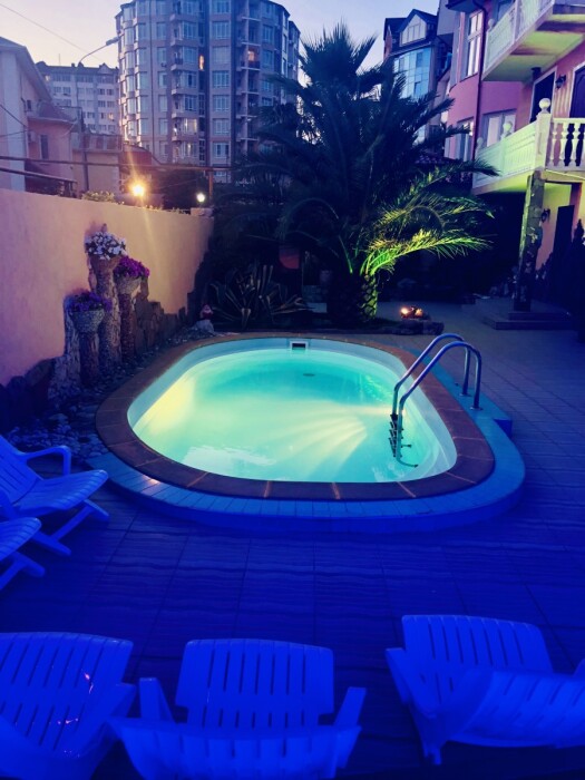 Наш гостевой дом в Адлере предлагает гостям уютные комнаты с классической обстановкой. В каждой комнате есть кондиционер и холодильник, что особенно важно в теплом климате. Не каждый дом в Адлере с бассейном, а у нас есть прекрасный открытый бассейн с подогревом. Рядом оборудована терраса с шезлонгами, где Вы сможете расслабиться и загорать после купания.