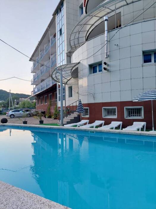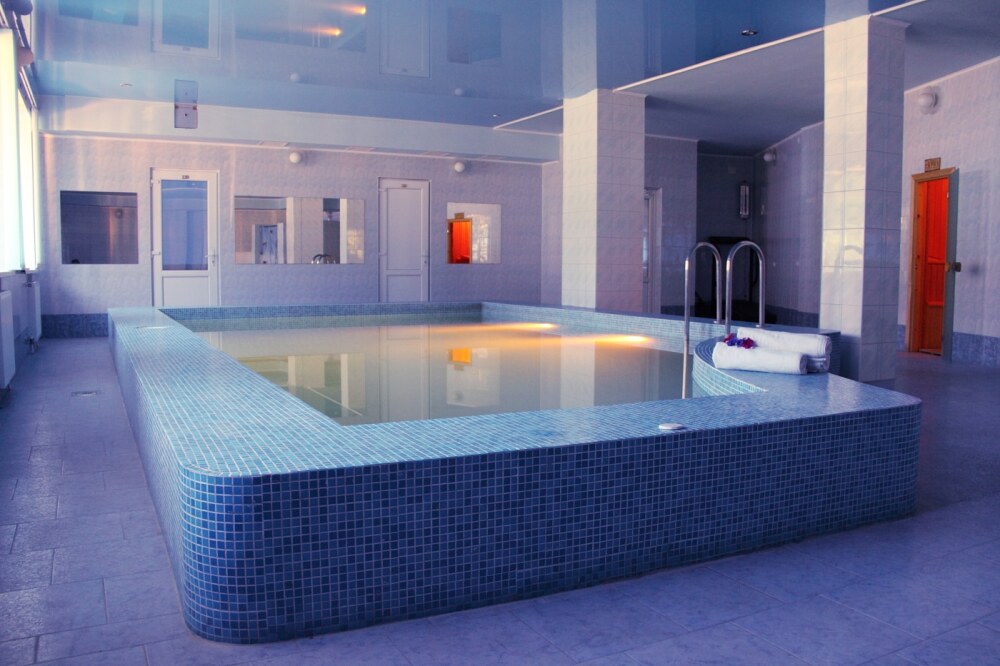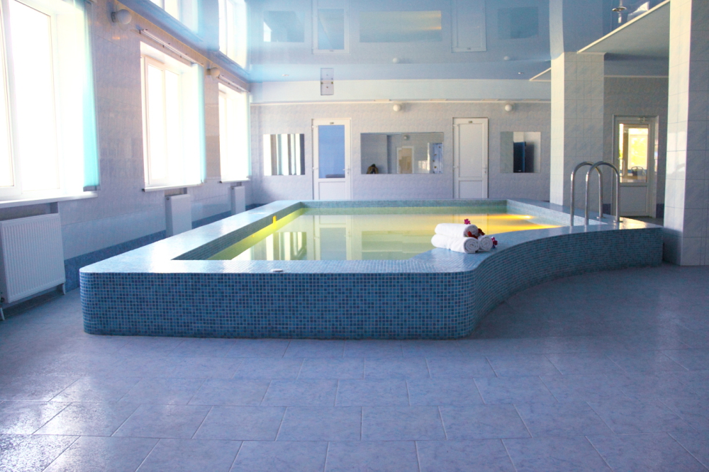 На территории отеля — открытый бассейн и на 1 этаже отеля — закрытый бассейн. Оба бассейны с подогревом. Так же в распоряжении гостей сауна с кедровой бочкой.