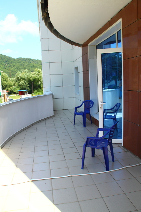 На пятом этаже находится кафе-терраса. С открытой веранды-балкона открываются удивительные пейзажи, великолепные горы, скалы, горная речка, прекрасная панорама моря – все это благотворно действует на человека. Прекрасное место для вечернего отдыха на свежем морском воздухе, где можно приятно провести время за чашечкой чая или кофе, а при желании за бокалом холодного пива или рюмочкой коньяка.