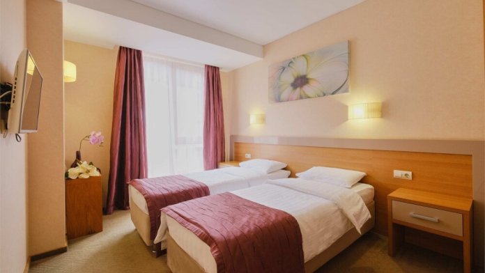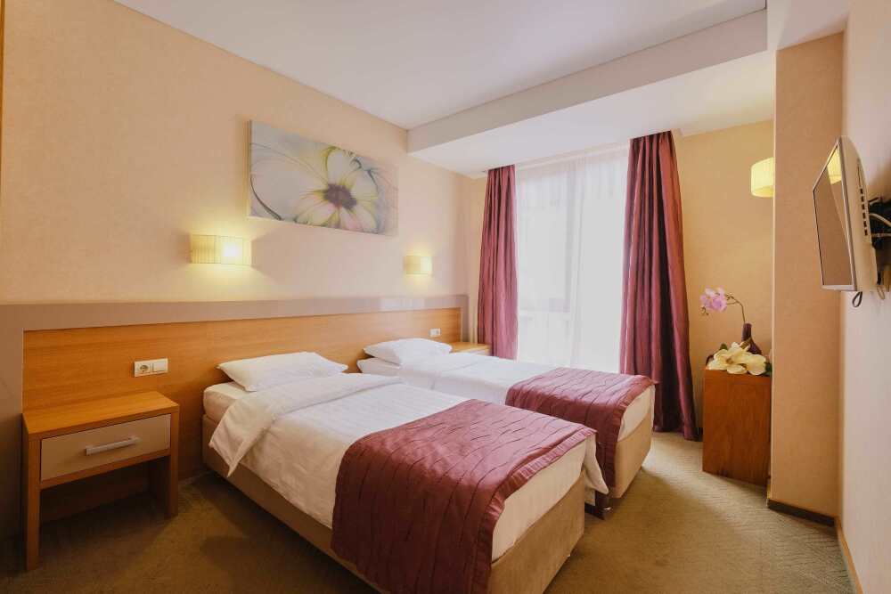 Уютный однокомнатный номер с двуспальной или двумя односпальными кроватями. Один ребёнок до 6 лет — можно без отдельного спального места.