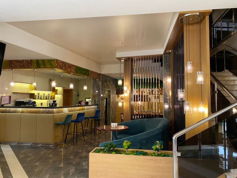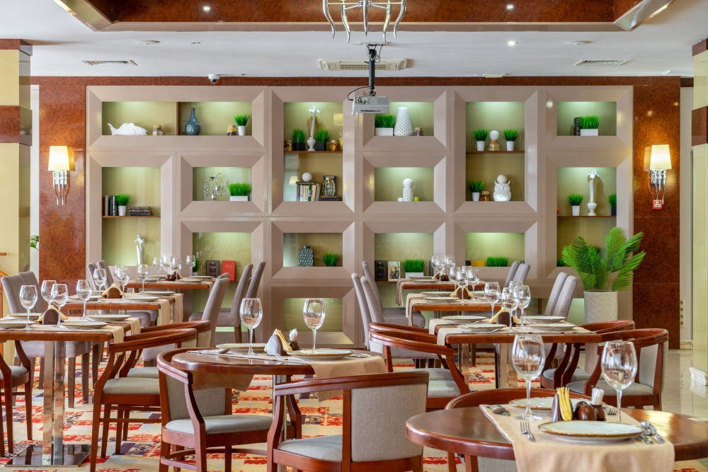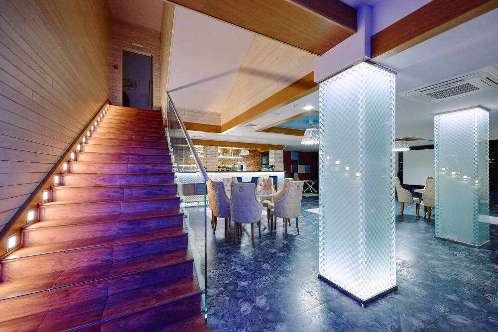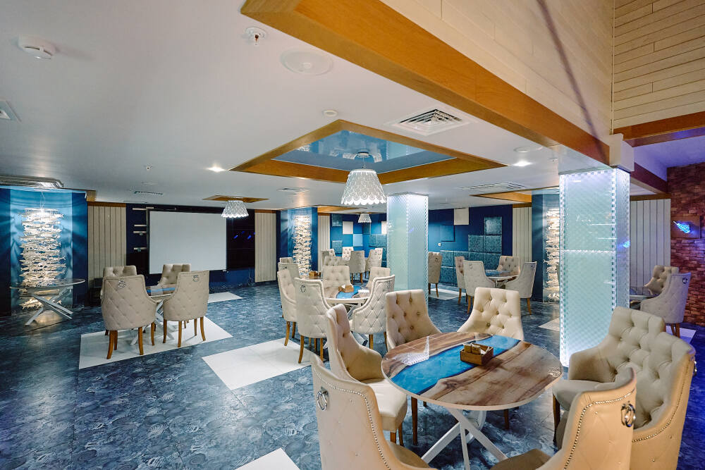 Ресторан способен принять до 70 посетителей и выполнен в стиле современной элегантности, с преобладанием светлых и гармоничных цветов. Атмосфера здесь способствует расслабленному отдыху и спокойному общению. В меню представлены кулинарные шедевры, объединяющие изысканный вкус с эстетическим оформлением, а широкий выбор напитков делает кулинарный опыт еще более насыщенным. Это идеальное место для проведения уютных встреч и наслаждения теплыми моментами в кругу друзей и близких.