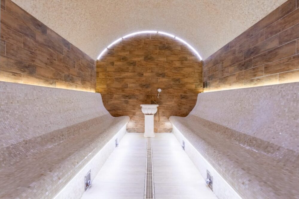 В отеле расположен превосходный СПА-центр, посещение которого уже включено в стоимость проживания. Здесь вас ждет широкий выбор СПА-уходов для лица и тела, а также аква-программы, направленные на укрепление здоровья, улучшение общего состояния и укрепления иммунитета, также в вашем распоряжении открытый бассейн с подогревом, хаммам и финская сауна.