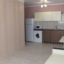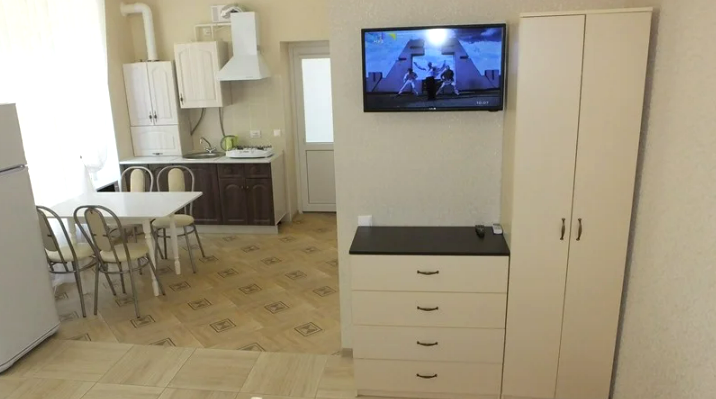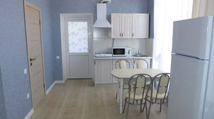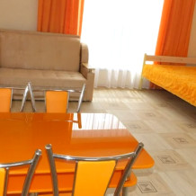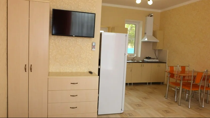 Все номера со своими санузлами и кухнями, оснащенными всем необходимым оборудованием и посудой. У каждого номера своя собственная зона отдыха на террасе со своим столом и стульями, сушилка для белья.