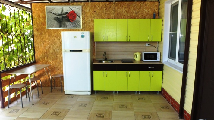 На территории гостевого дома благоустроенный двор, с местами для отдыха на свежем воздухе, имеется мангальная зона. Горячая и холодная вода круглосуточно. Перебоев с водой не бывает.