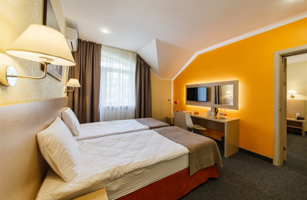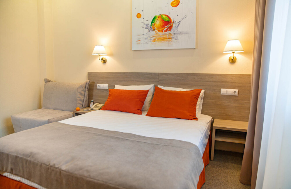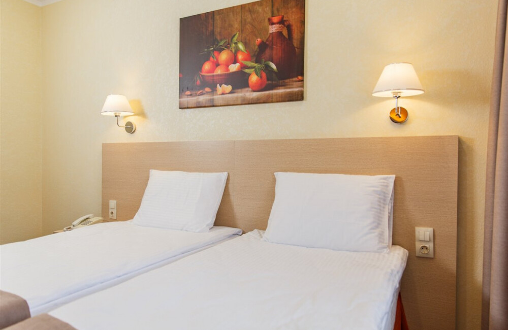 Комфорт - это однокомнатный номер с одной большой кроватью king size 180*200 см или двумя раздельными кроватями.