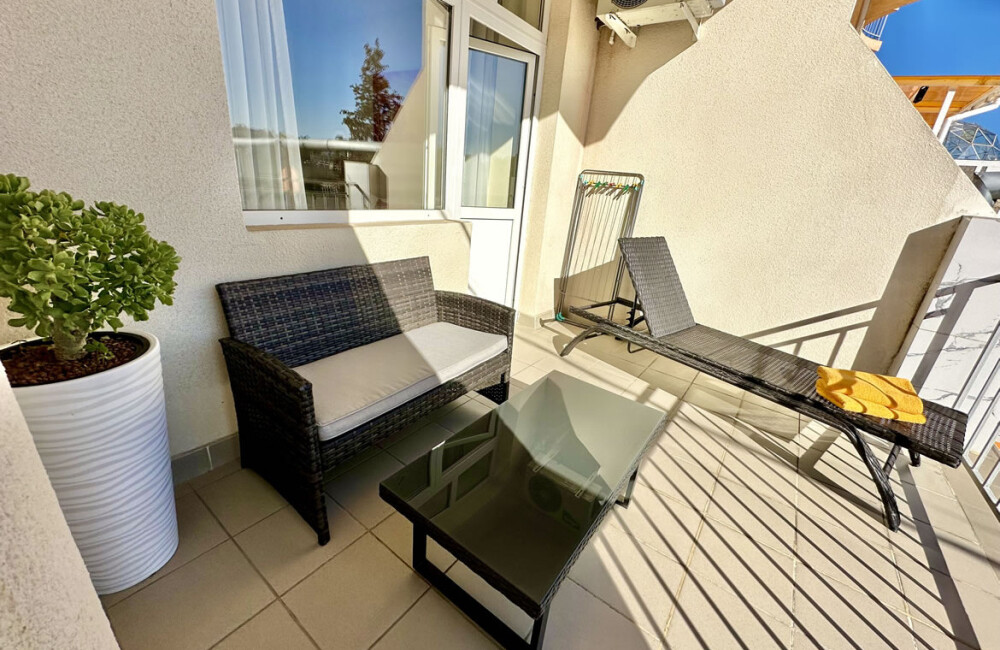 Просторный балкон с лежаками позволяет принимать солнечные ванны прямо не выходя из номера.