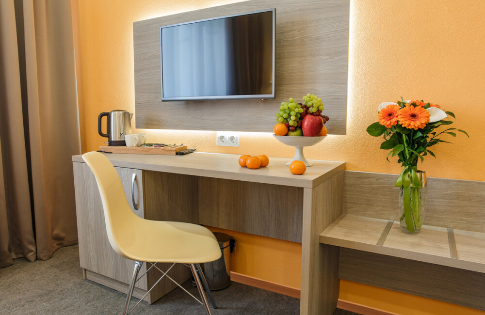 Стандарт - однокомнатные номера со всей необходимой мебелью, оборудованием и удобствами.