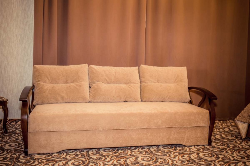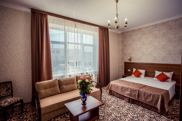 Номер повышенной комфортности с дополнительными местами. Просторный номер с одной большой кроватью и диваном.