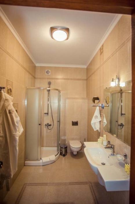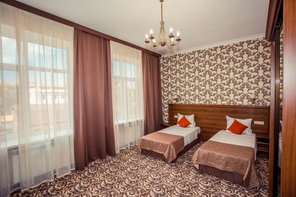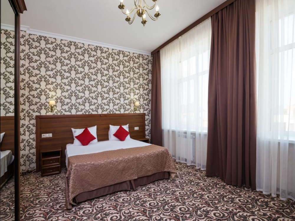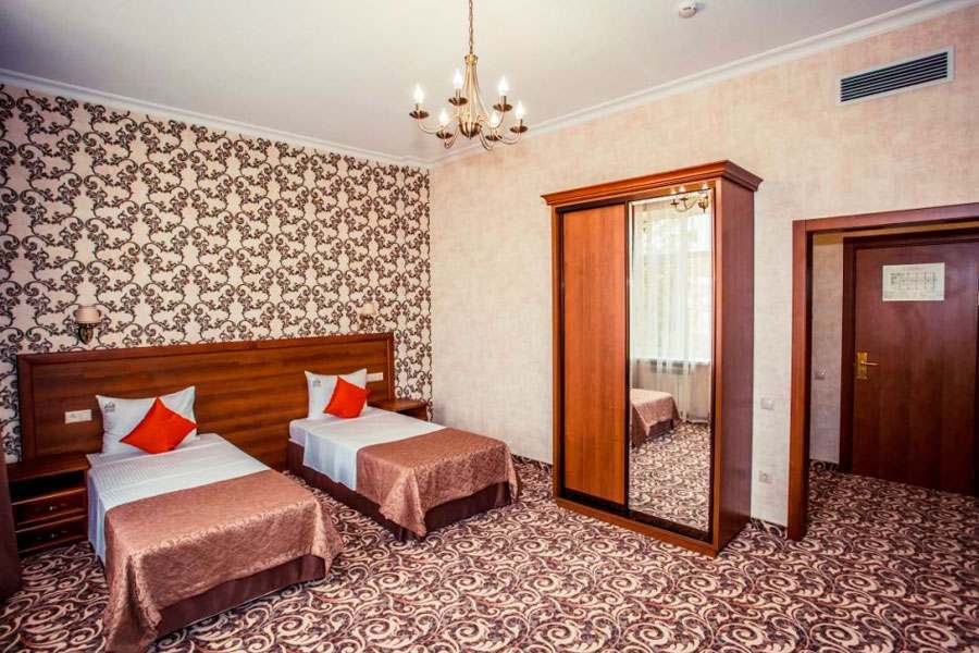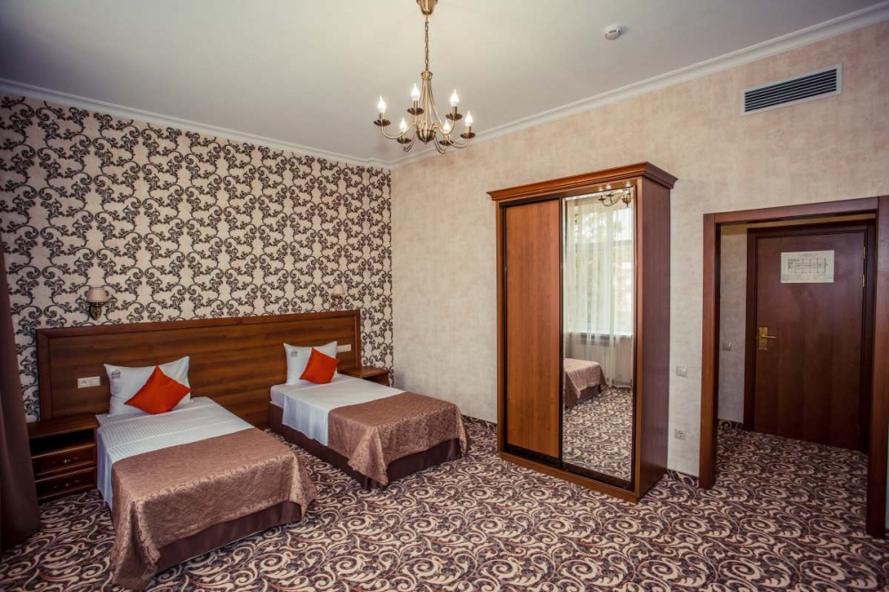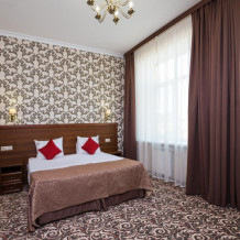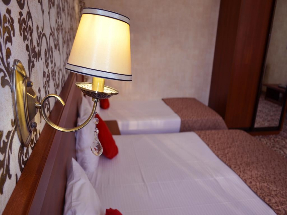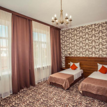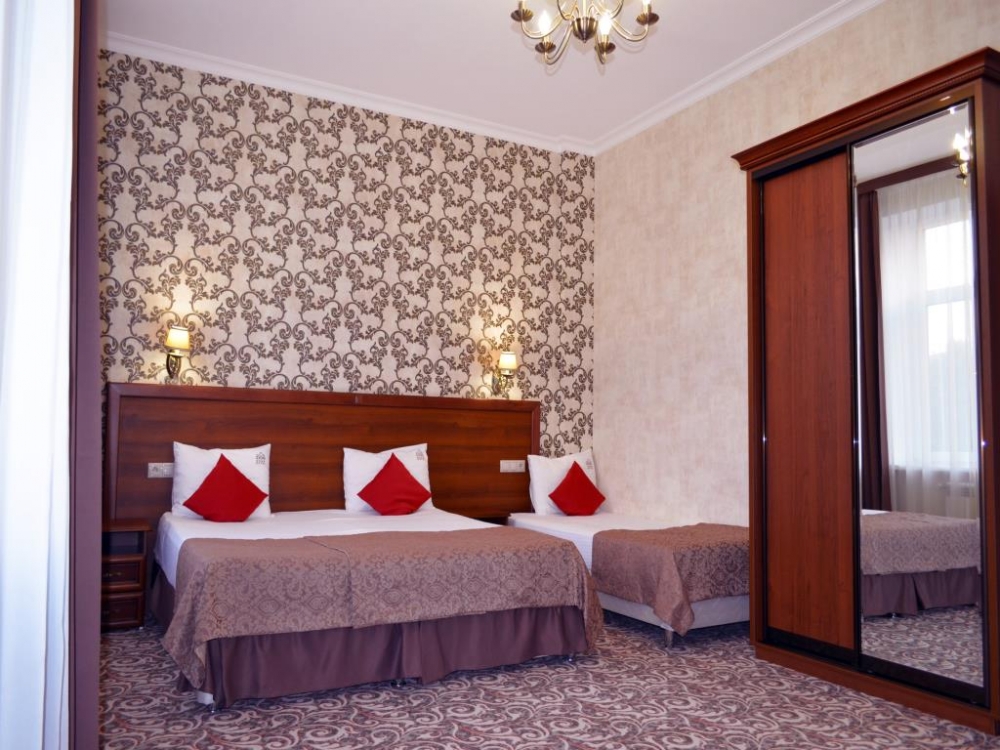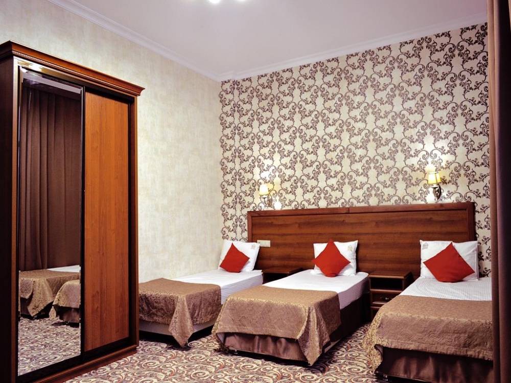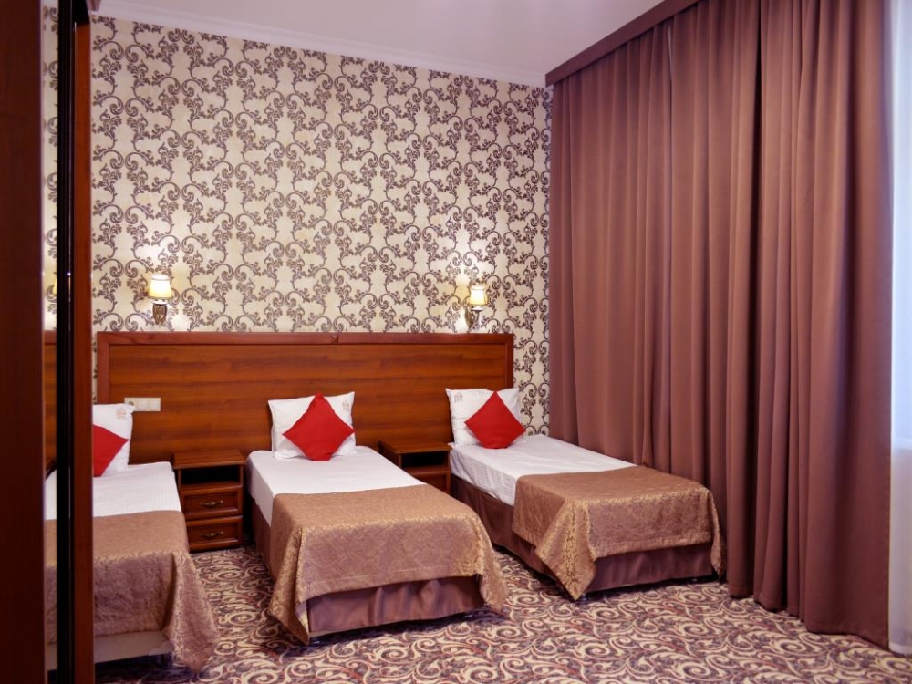 В номере: 1 двуспальная и 1 односпальная кровати или 3 односпальные кровати. Большой номер, в котором могут комфортно разместиться три гостя.