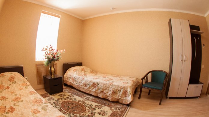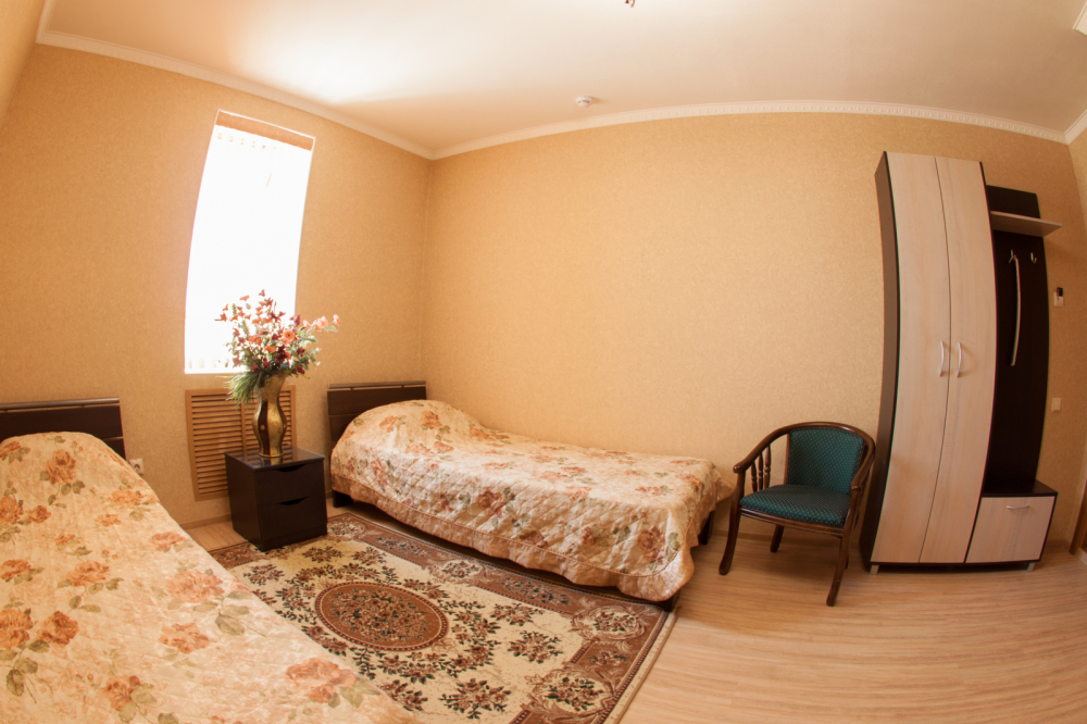 Просторный однокомнатный номер оснащен современной 2-спальной кроватью с ортопедическим матрасом.