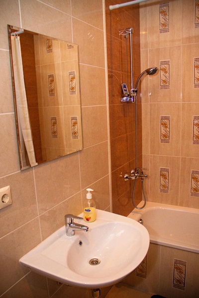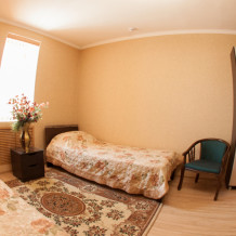 Просторный однокомнатный номер оснащен современной 2-x спальной кроватью с ортопедическим матрасом.
